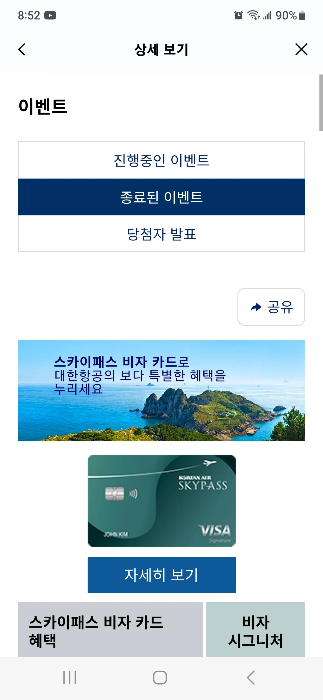 1) US BANK SKY VISA 이 카드는 비자 시그니처 카드이다. 웰컴 마일리지로 45000점을 주는데 조건은 3개월에 3000불을 사용하면 된다. 또한 남편이 리퍼를 해줬을 경우에 남편에게도 5000점을 준다. 처음에 남편 친구의 리퍼럴로 신청했고, 나는 남편이 리퍼해줬고, 내 동료에게 내가 리퍼를 해줬다. 1년 연회비는 95불이다. 두 번째 연회비가 청구되었을 경우, 더 이상 이 카드의 사용을 원하지 않는다면, 전화로 다운그레이징 해달라고 요청하면, 서비스가 많이 없는 카드로 재발행해준다. 신용카드를 안 쓴다고 없애버리면 신용도가 내려가서 이런 방식으로 카드만 유지한다고 한다.