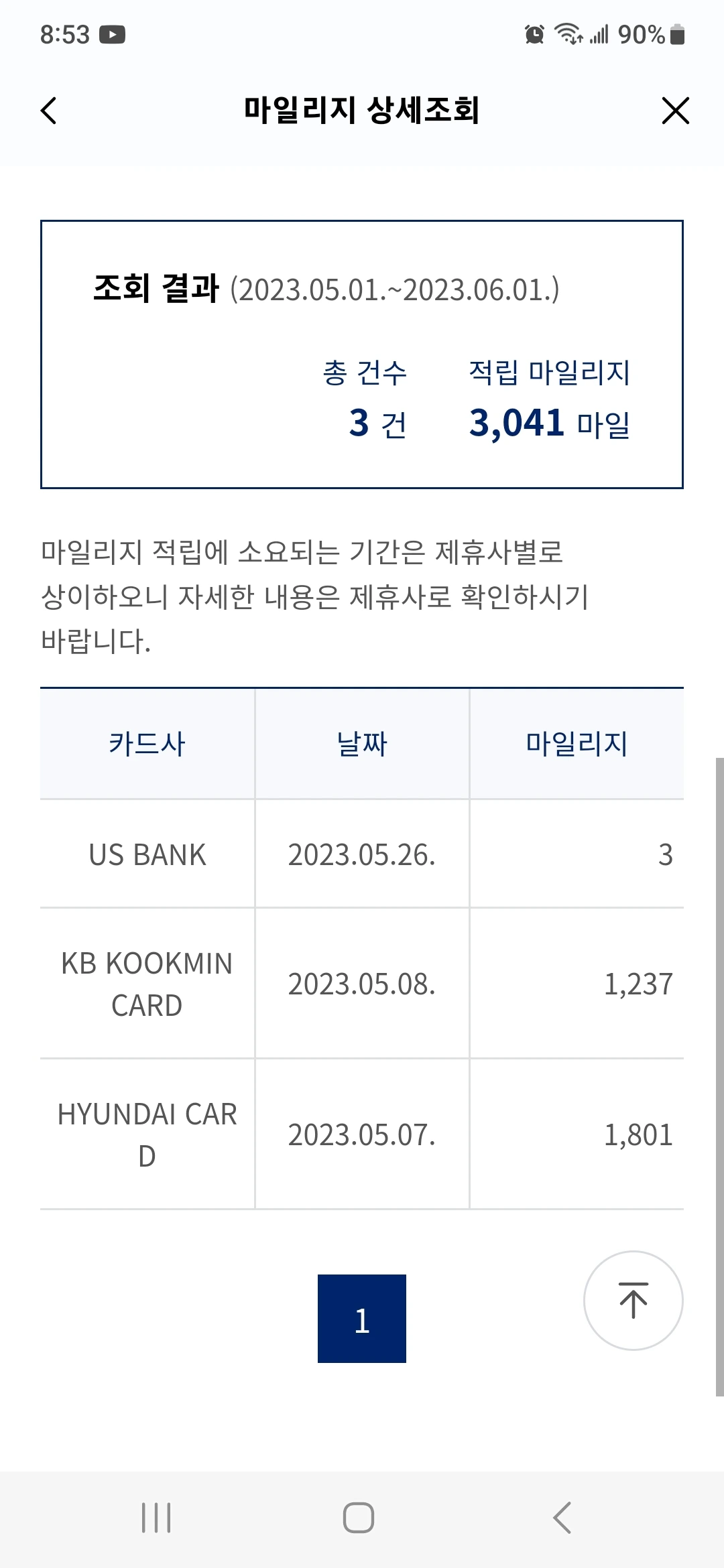 이런 카드들의 서비스 내용 중에 하나가 해외에서 사용하면 마일리지를 두 배 적립해 주는 것이다. 미국에 와서 거의 2년간 한국에 있는 돈을 소진하느라 일부러 한국신용카드를 사용했다. 그냥 달러를 사용하는 것보다 살짝 결제 금액이 더 나오지만 무시할 수 없는 두 배의 유혹에 이끌려 갔다.