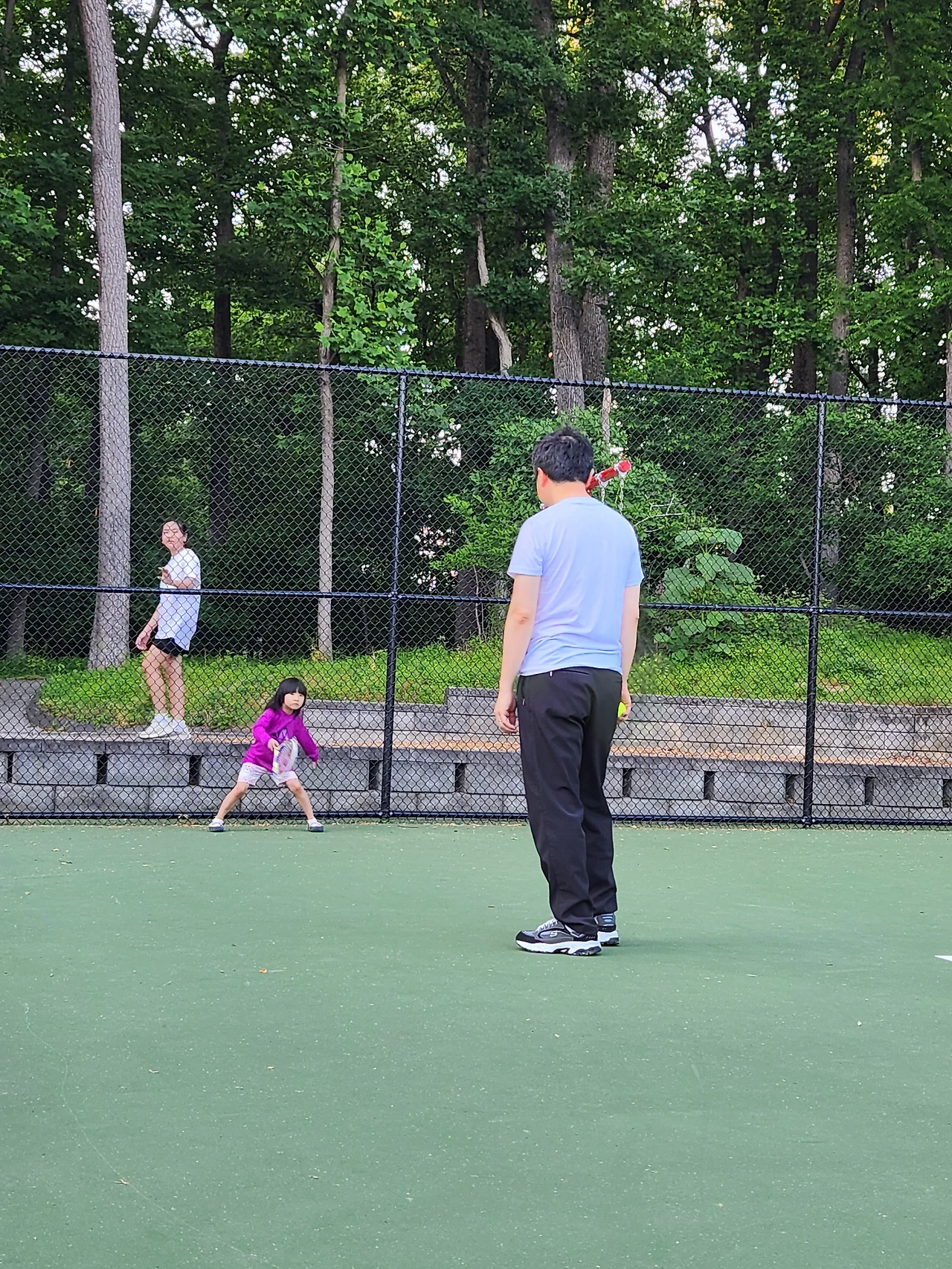 사실 아이들도 테니스라켓과 공은 있다. 요즘 많이 안 갔지만, 주말마다 아빠랑 인근의 파크에 가서 운동을 한다. 한국과는 다르게 무료로 개방된 테니스장이 여기저기 매우 많다. 한 곳은 야간 조명이 안 되는 곳이고, 센터니얼파크처럼 큰 공원은 조명시설까지도 정말 잘해놨다.