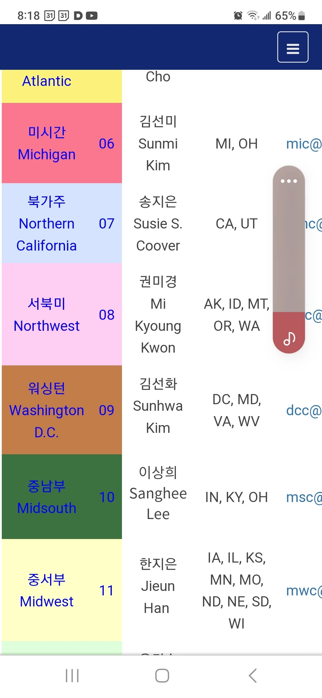 미국은 50개 주와 수도인 D.C까지 큰 영토를 이렇게 나눈다. 한글을 배울 수 있는 한글학교가 여기저기 굉장히 많다. 내가 속해 있는 곳은 버지니아주,WEST 버지니아주, 워싱턴 DC와 메릴랜드주를 통합으로 워싱턴지역협의회에 속한다. 이 단체를 WAKS라 칭하고, 이런 지역협의회가 전미에 총 14개 있다. 거대한 단체를 NAKS라고 한다.