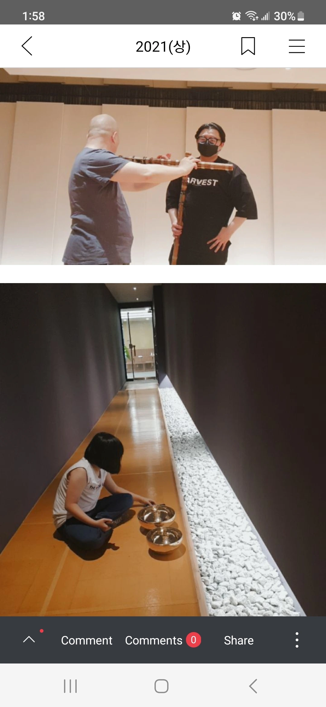 한국에서 6개월 정도 소금이라는 국악기를 배워본 적이 있다. 원래는 남자들이 하는 대금시간이었는데, 손가락이 안 닿아서 우리 딸은 소금으로 시작했다. 카이스트에 매주 한 번씩 서울대 국악과 학생이 와서 가르쳐줬다. 지인의 아들이라서 겸사겸사 우리도 한번 배워볼까? 해서 시작했다. 카이스트에 있는 명상과학 연구소 소장님과 함께 배웠다. 우리 딸이 진도가 잘 안 나가서 옆에서 어깨너머로 내가 배우게 된 것이다. 아이들은 처음에 소리를 내는 것조차도 시간이 꽤 걸린다.