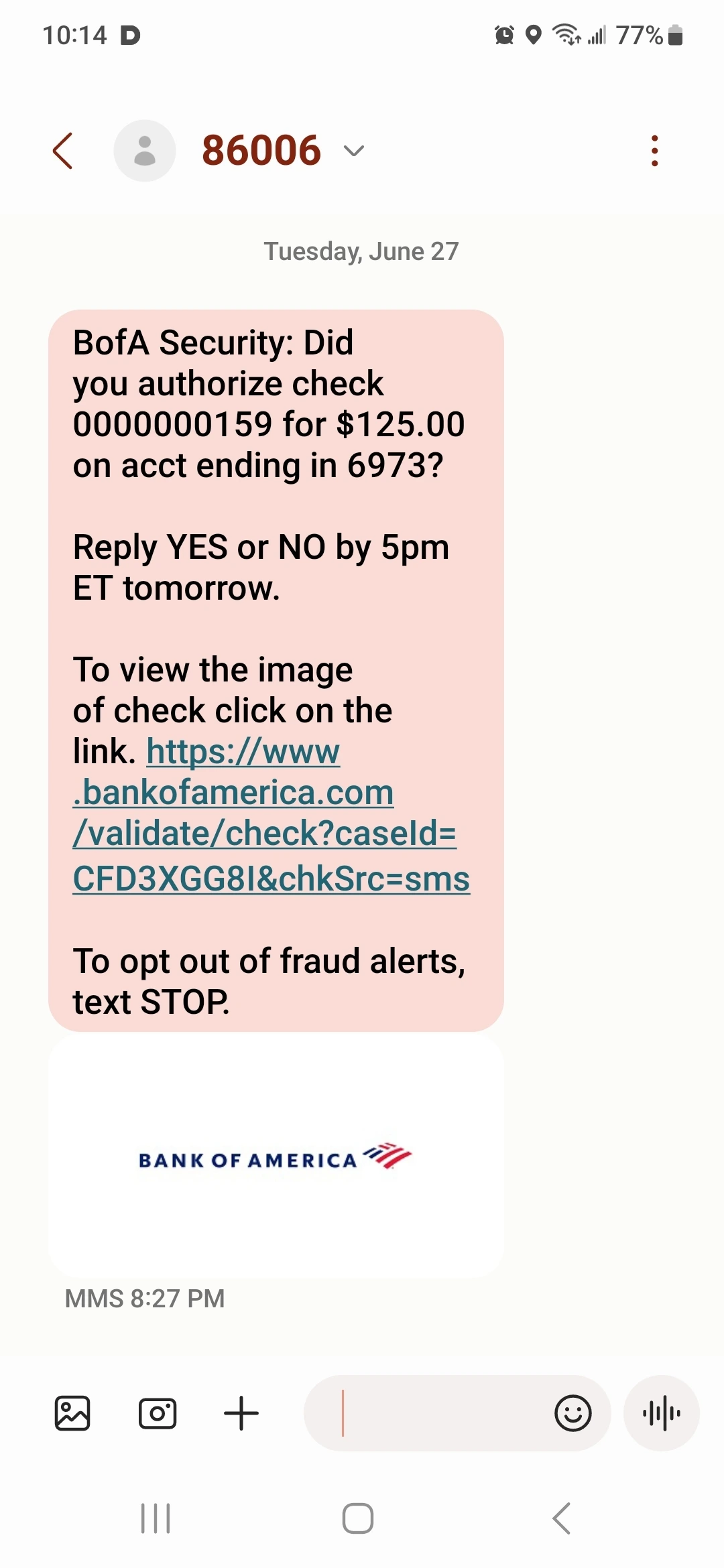 네가 정말 125불을 사용한 것이 맞나? 내일까지 회신하라. 처음에는 어리둥절했다. 링크를 타고 들어가 보니 평소 사용하던 bank of america의 어플과 좀 달랐다. 또한, 갑자기 125불을 사용한 기억이 나지 않았다. 요즘 이런 사기가 판을 친다더니 이런 문자도 오네. 하고 남편이랑 그냥 넘겼다. 그런데 체크북을 보니 내가 사용한 내역이 맞는다.ㅋ