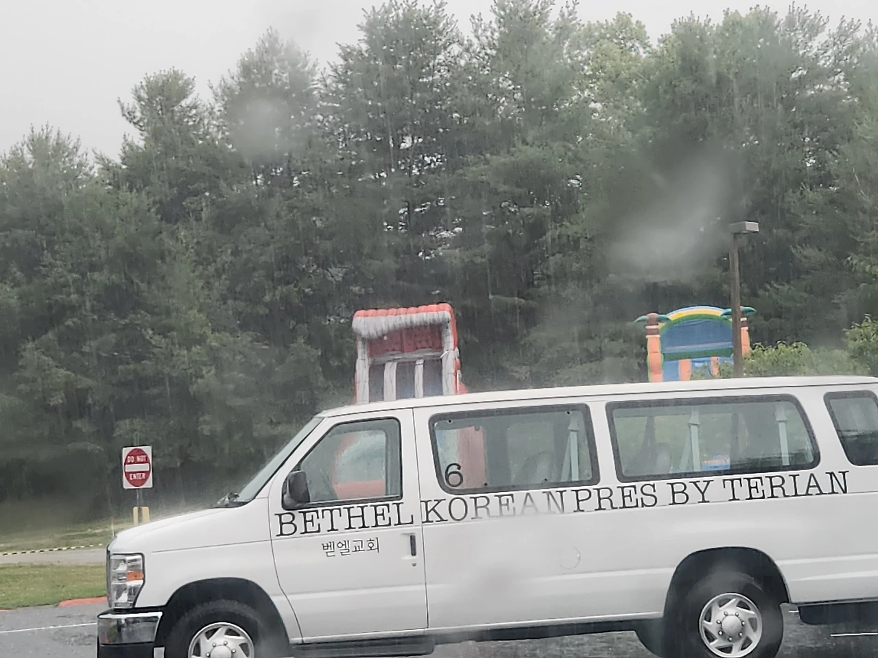 5일 차 마지막날, 교회에서는 물놀이 워터슬라이드도 설치하고 큰 준비를 하시는듯했다. 수영복을 입혀 보내라는 공지와 함께. 하늘도 무심하시지 엄청난 비가 쏟아지고 있었다. 물놀이를 못 할 것만 같은 날씨이다.