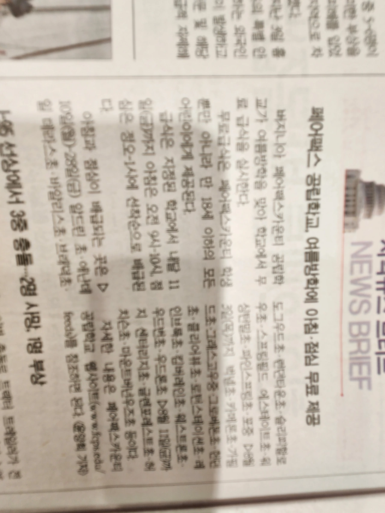 10주의 긴 방학을 즐기고 있다. 한국에서 부모님 미 오셔서 여기저기 돌아다니느라 바쁘다. 신문을 읽다 보니 버지니아 페어팩스카운티에서도 여름방학에 급식을 준다고 한다. 아침 점심을 준다고 적혀있었다. 우리 카운티는 지정된 몇 개의 학교에 가서 줄 서면 여러 가지를 준다. 우유 초코우유 과일 냉동식품 옥수수 등 처음에는 몇 번 받으러 가봤다. 아이들이 그 냉동식품을 별로 안 좋아해서 그만뒀다. 그래서 이렇게 방학에 푸드를 제공해 준다는 게 참 대단한 나라인 것 같다.