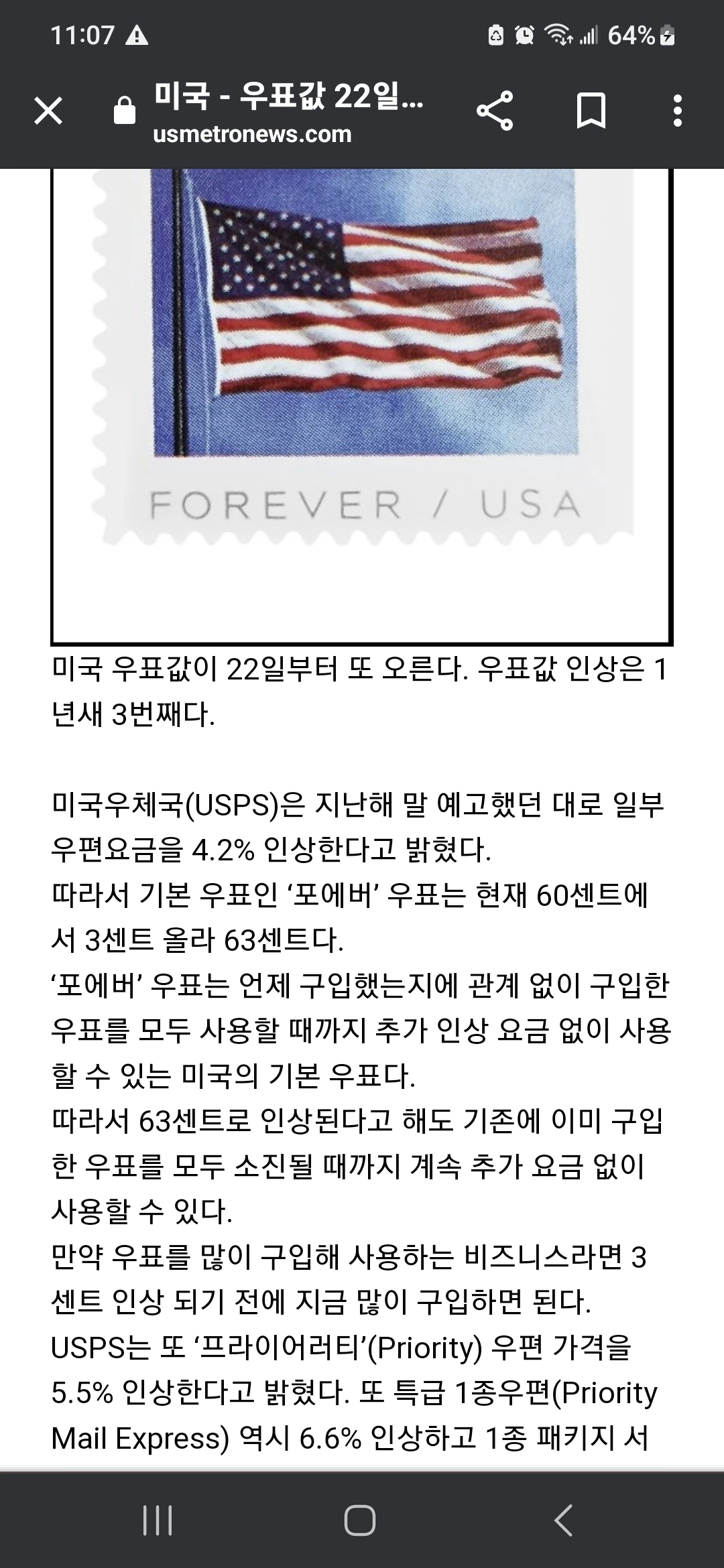 미국우표 한 장은 815원쯤 한다. 코스트코에서 100장에 62.75불에 줬으니 ÷100 ×1300원을 하니 815원이 된다. 한국에 비해 비싸 보이지만, 저 멀리 서부지역으로 보낸다 치면 그리 비싼 가격도 아닌 것 같다.