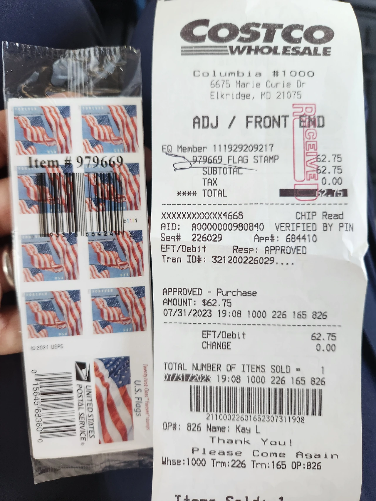 미국의 우표는 우체국이 아닌 코스트코에서도 판다. 한국과 다르게 우표에 금액이 써져있지 않다. 가격이 올라도 예전에 사둔 우표를 붙여서 보낸다. 한국은 추가요금을 붙여야 발송이 된다. 마지막으로 한국우표요금으로 250 원을 기억하는데, 지금검색해 보니 430원이란다.