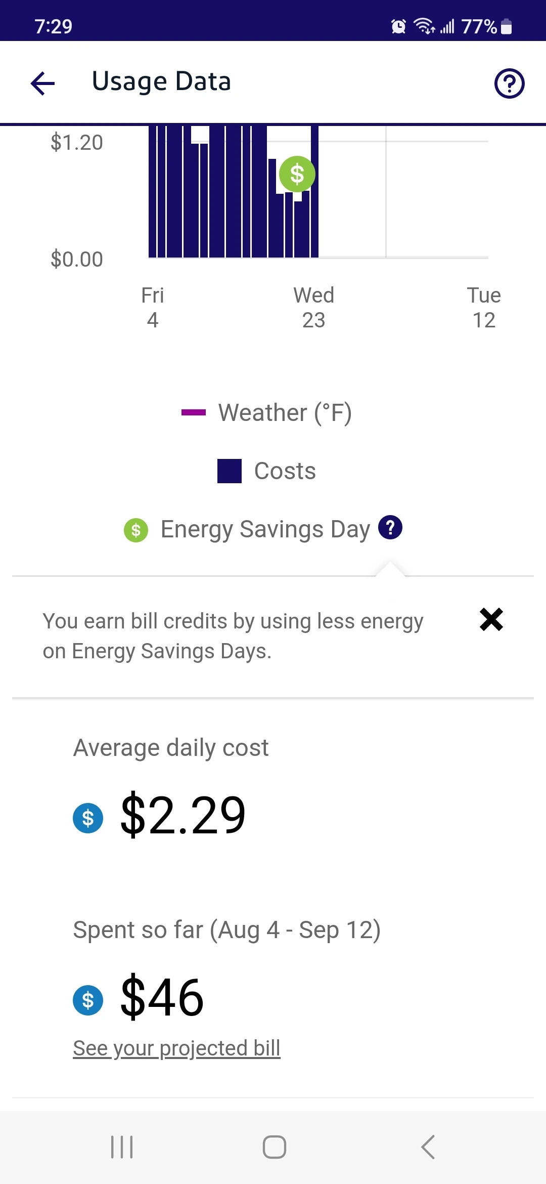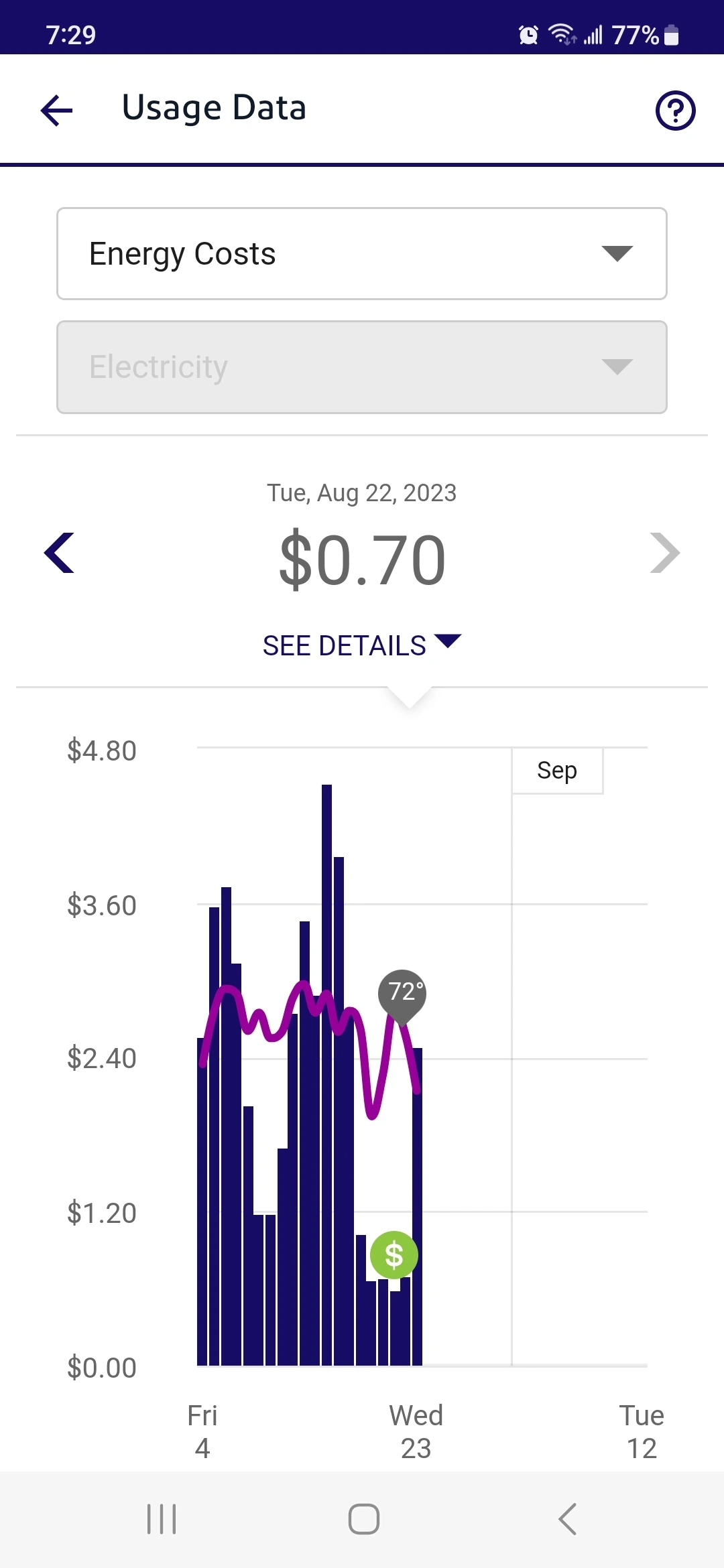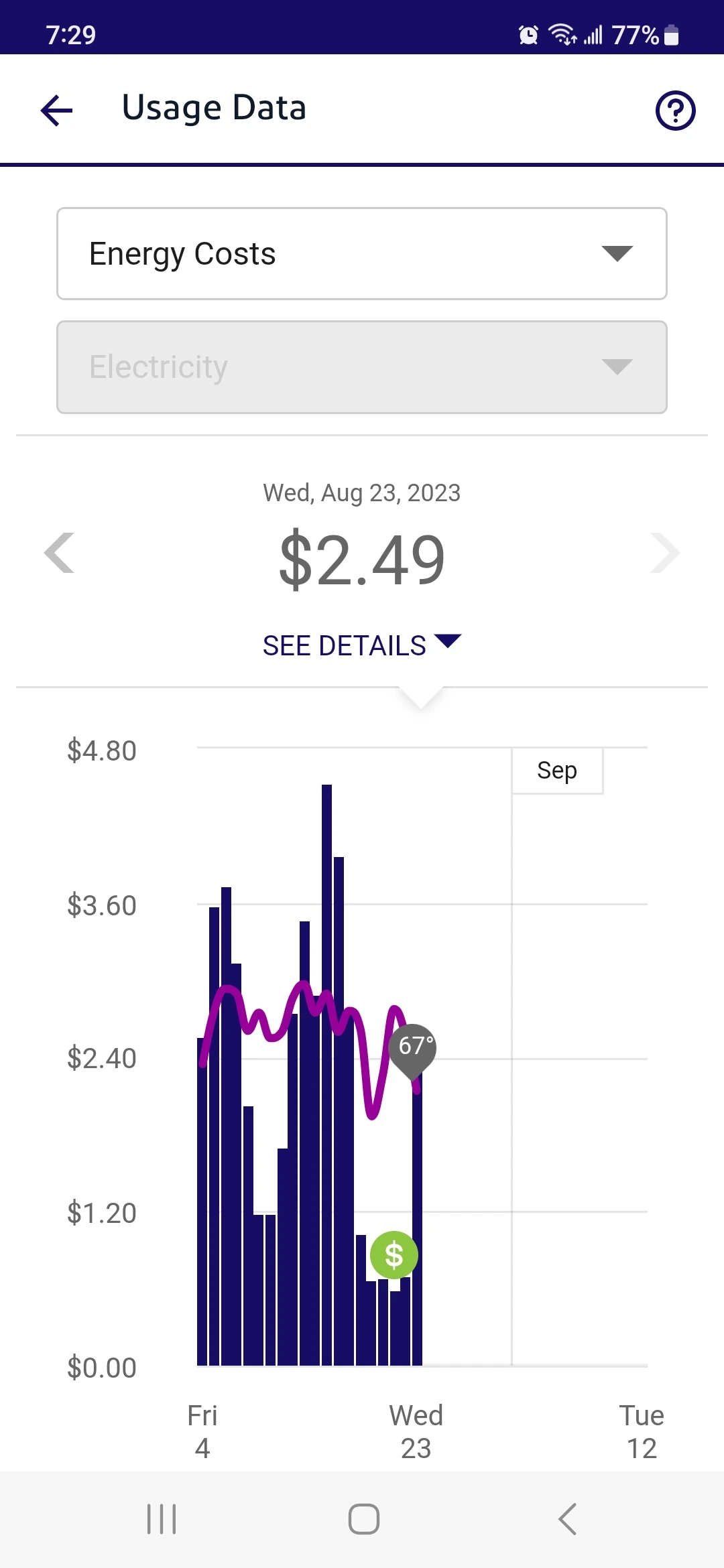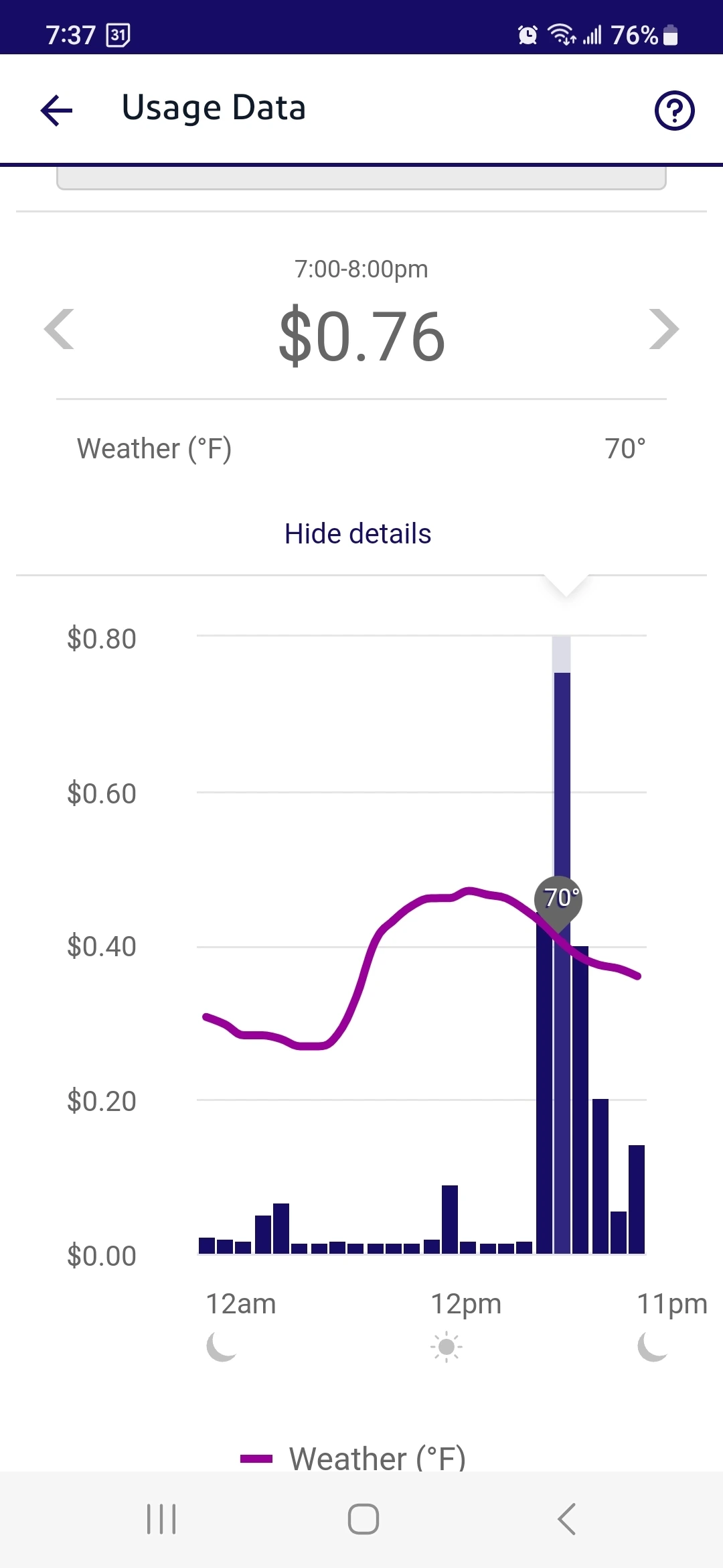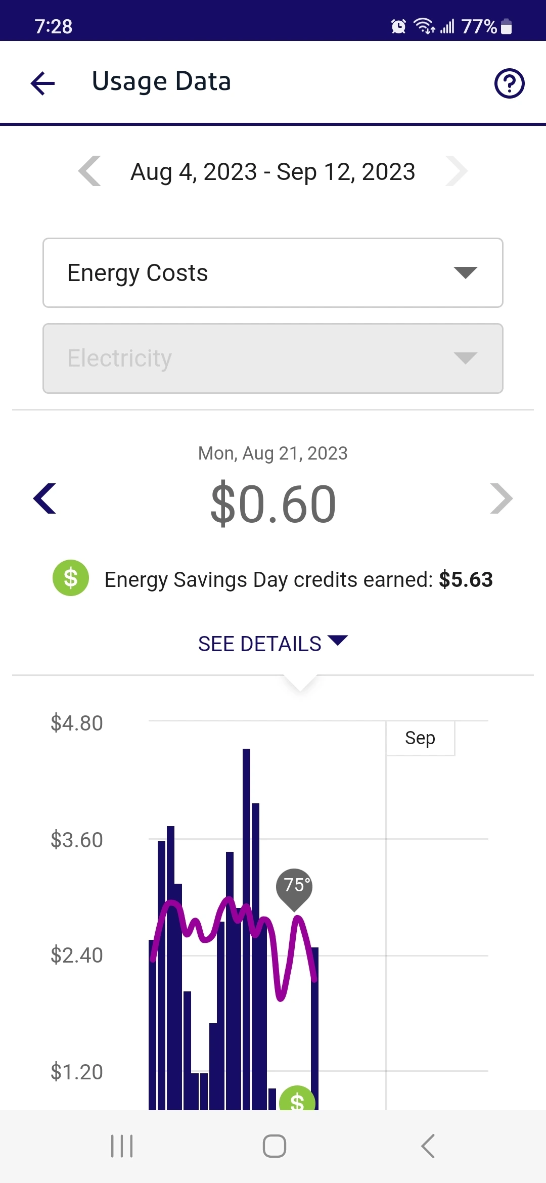 미국전기요금어플은 이틀 전 사용량 시간대별 요금이 정확히 뜬다. 신기하기도 하지.