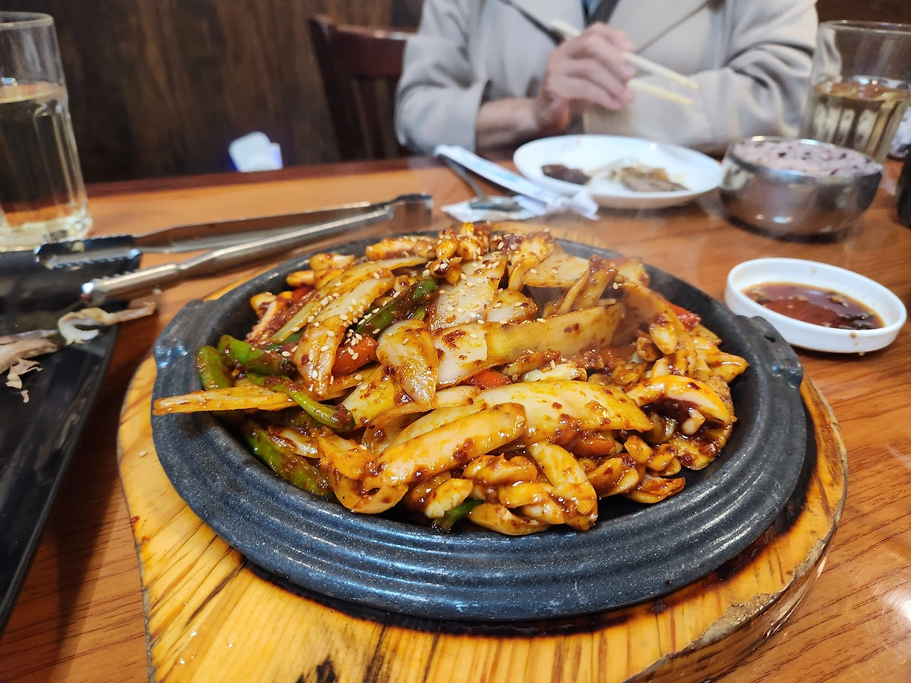 어제 저녁은 한식당에 가서 배가 터지도록 먹었다.우리팀이 종합2위로 매니져님께서 상을 받으셨다. 8명이 애틀란타 청기와라는 식당으로 몰려가 이것 저것 시켜서 나눠먹었다. 우리는 흑염소전골,아구찜,오징어볶음, 해물파선,순대모음 등 갑자기 매운것을 먹으니 스트레스가 확 풀렸다.