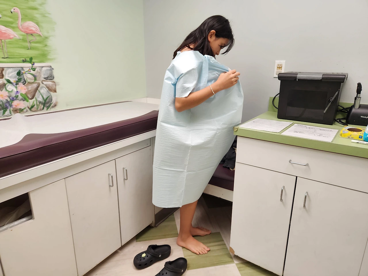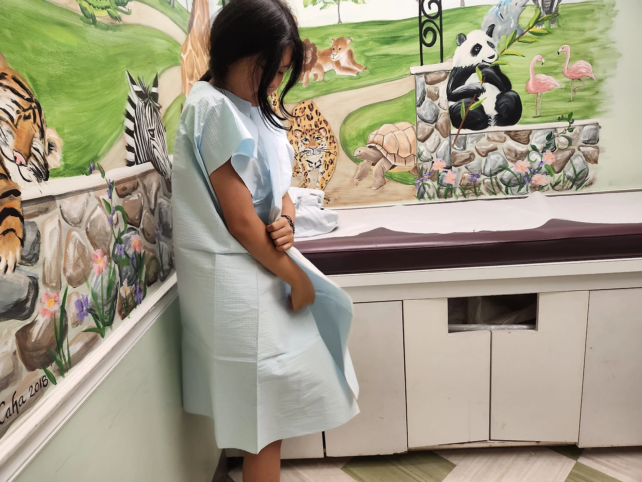미국은 룸에서 대기를 하면 의사가 노트북들고 찾아오는 형식으로 진행된다. 아이들은 속옷차림으로 가운을 갈아 입고 의사를 기다린다.