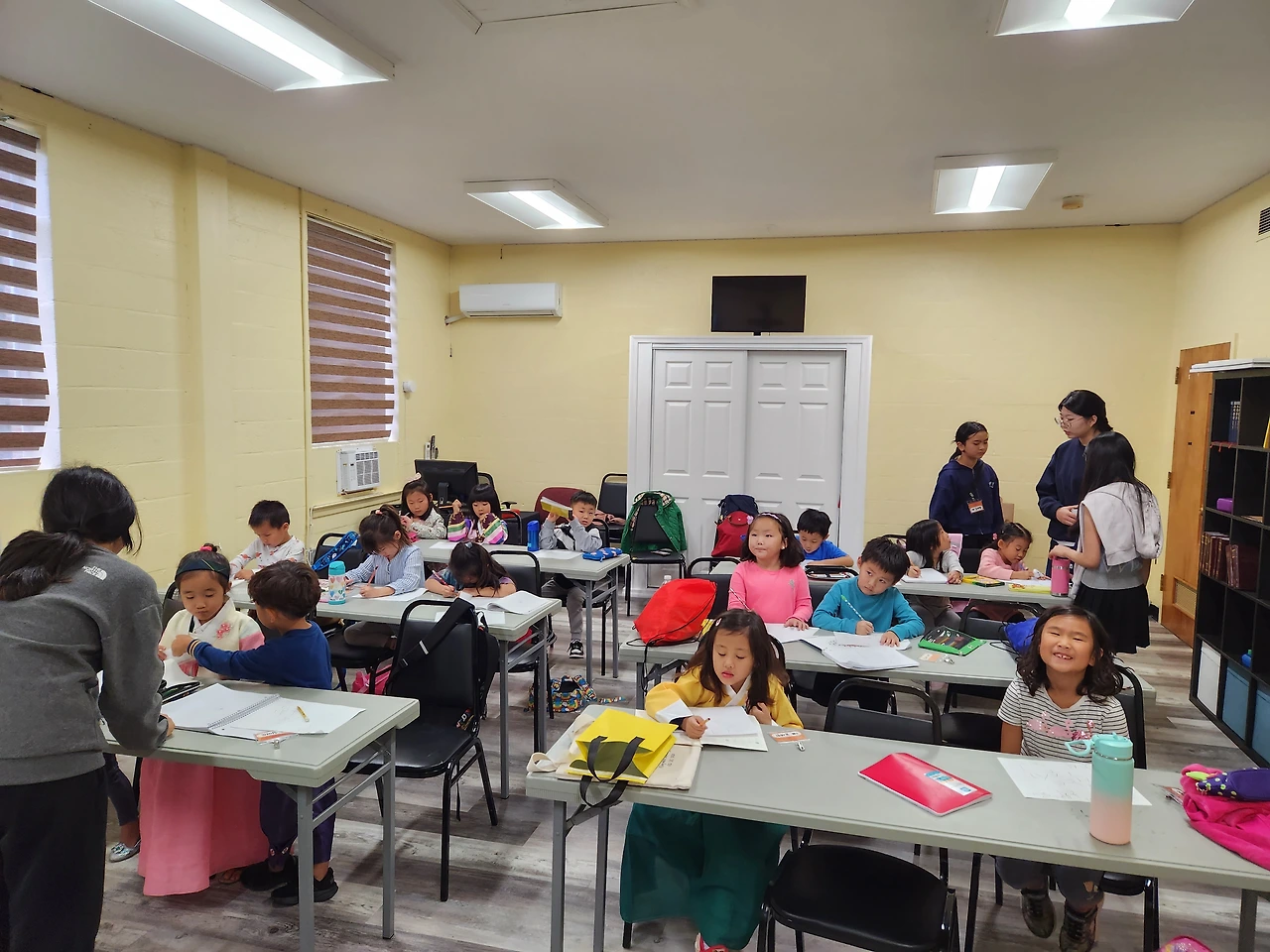 생각보다 많은 아이들이 입고 왔다. 키가 커져서 새로 한복을 구입한 친구들은 작아진 한복도 여유 있게 챙겨 왔다. 그 덕에 한복이 없는 아이들이 입을 수 있었다.