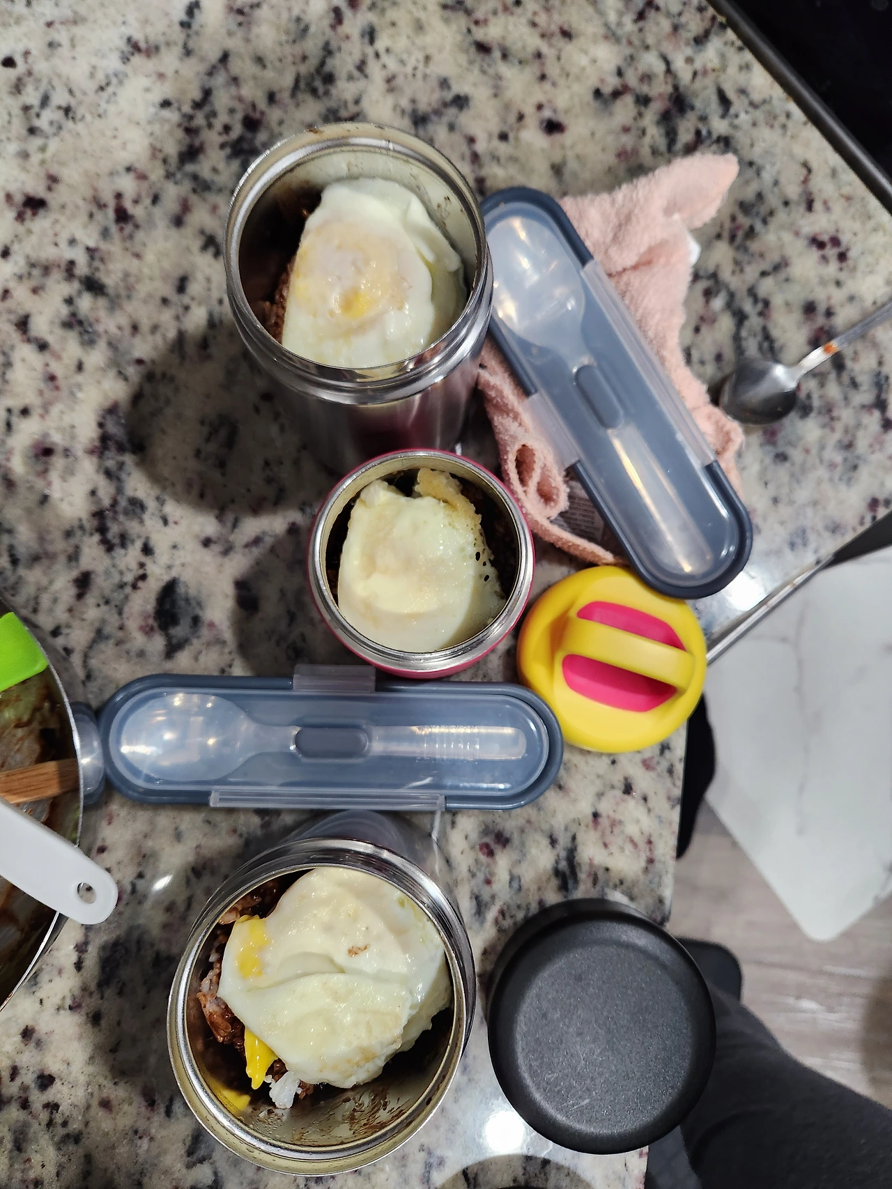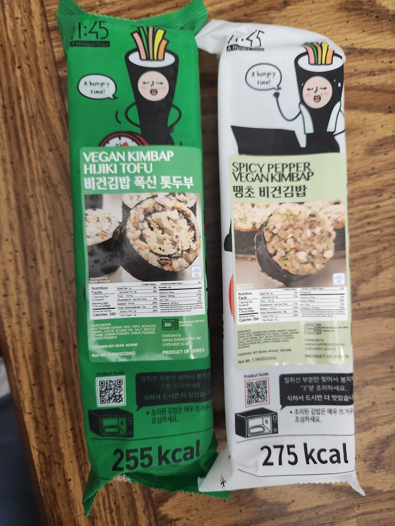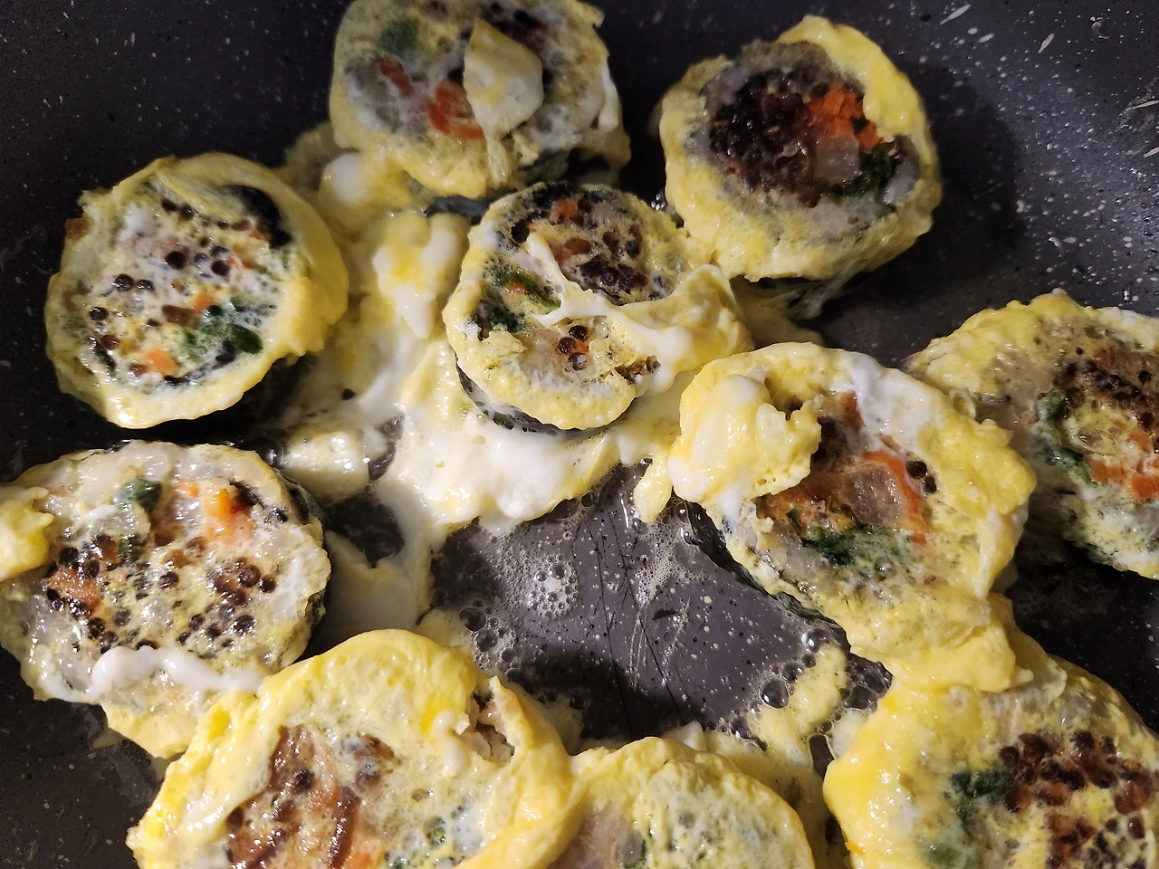 매번 메뉴는 김치볶음밥, 간장계란베이컨 볶음밥이었는데, 아이들이 신메뉴를 발견했다. 요즘 h mart에 2.99불 냉동김밥이 나온다. 10개들이 한팩에 계란 2개로 계란물을 입혀놓으니 맛이 환상이다. 이 김밥의 종류가 5가지 정도 된다고 한다. 집에서 2분 거리의 마트인데 얼른 가서 사 와야겠다.