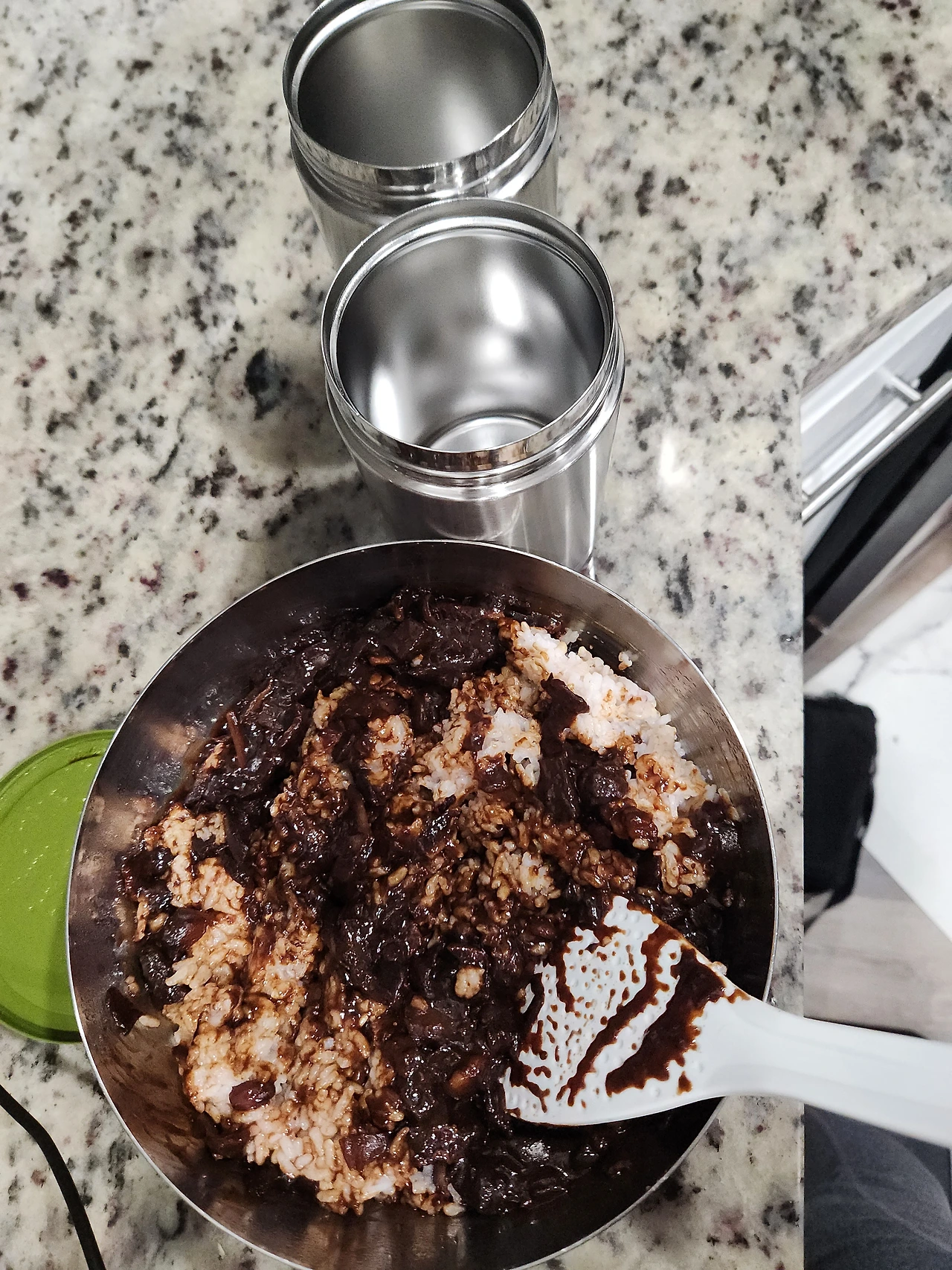 남편이 밤에 춘장으로 이런거를 만들어둔다.아침에 일어나 새 밥에 믹스하고 계란후라이. 한개를 올렺준다