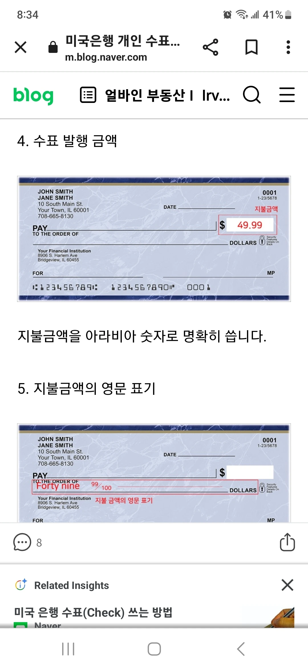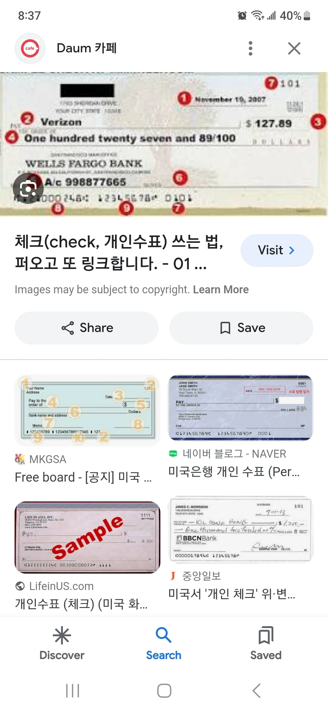 미국에 와서 체크라는 것에 약간 낯설었다. 사람들이 수표를 막 들고 다니고, 한 장 뜯어서 우편으로 보내기도 하고 아.... 이상한 나라다... 내 상식으로는 이해가 안 되네........... 이렇게 생각했던 때가 1-2년 전이였다. 지금 생각해 보니 엄청 편한 것이 체크이다. 요즘 카드로 인해 현금을 안 들고 다니지만, 신용카드로 결제가 안 되는 헌금, 레슨비, 학교에서 어떤 비용으로 결제를 할 때 등등 엄청 많이 사용한다. 나는 보통 매달 1일이 되면, 월세, 사무실 월세, 미술학원, 무용 레슨, 첼로 레슨 등등 5-6장의 체크를 쓴다.