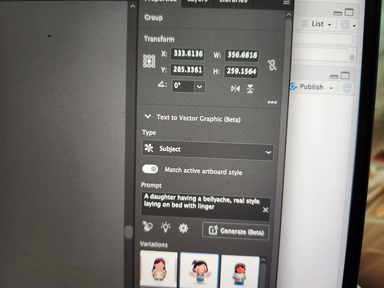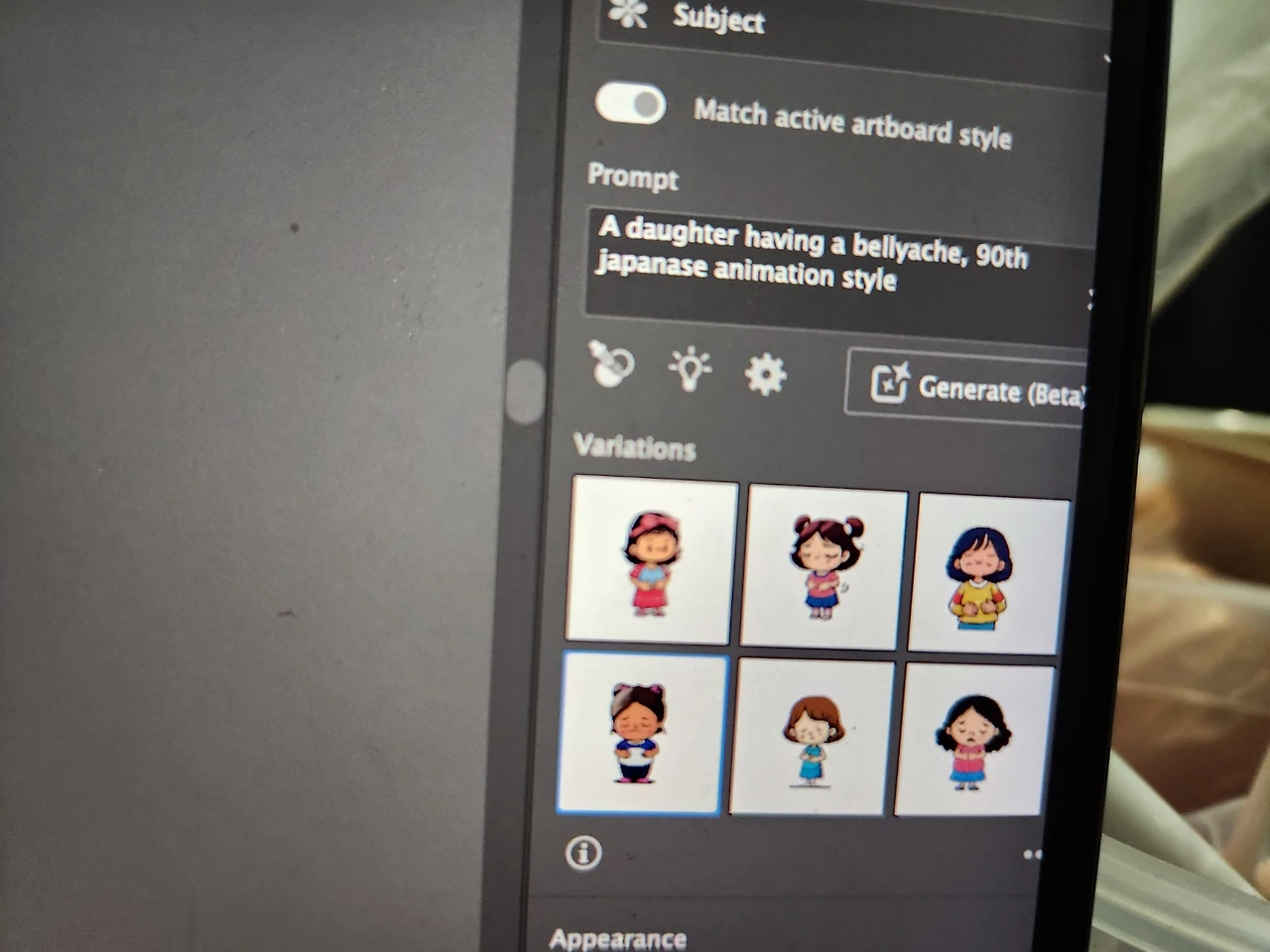 그런 게 있어? adobe illustration 2024에 이런 기능이 있다는 것이다. prompt에 a daughter having a bellyache, real style laying on bed with linger라고 입력하니, 아래에 귀엽고 예쁜 이미지가 자동으로 만들어졌다. 순식간에 이미지가 만들어지는 것이 신기했다. 한 가지만 만들어주는 게 아니라 여러버 전으로 다양하게 만들어주었다.