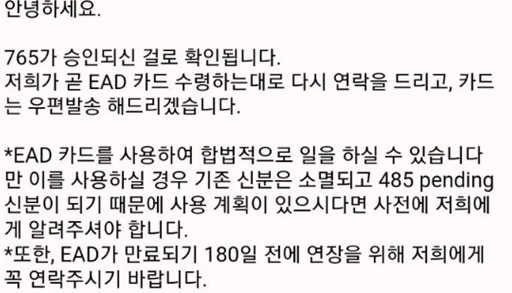 2022.08.06 김세인 I-765 승인 통지 받음