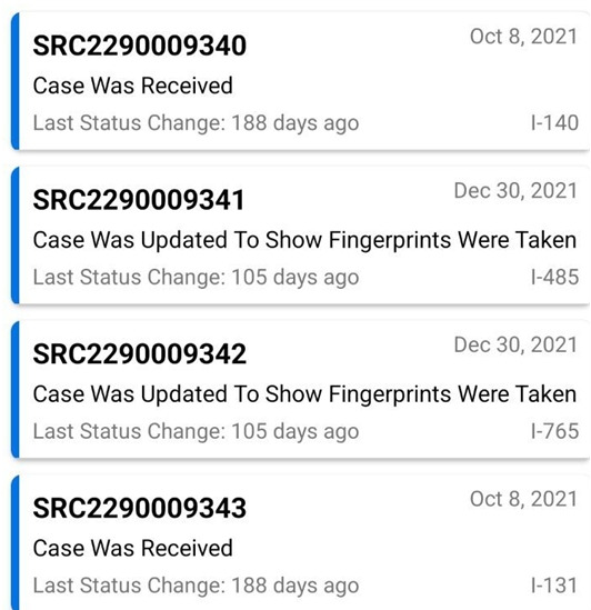22년 4.13일 날 살펴본 나의 케이스 사례이다(어플 CASE TRACKER FOR USCIS). 신청한 지 얼마 정도 지났는지 기간을 알려준다.