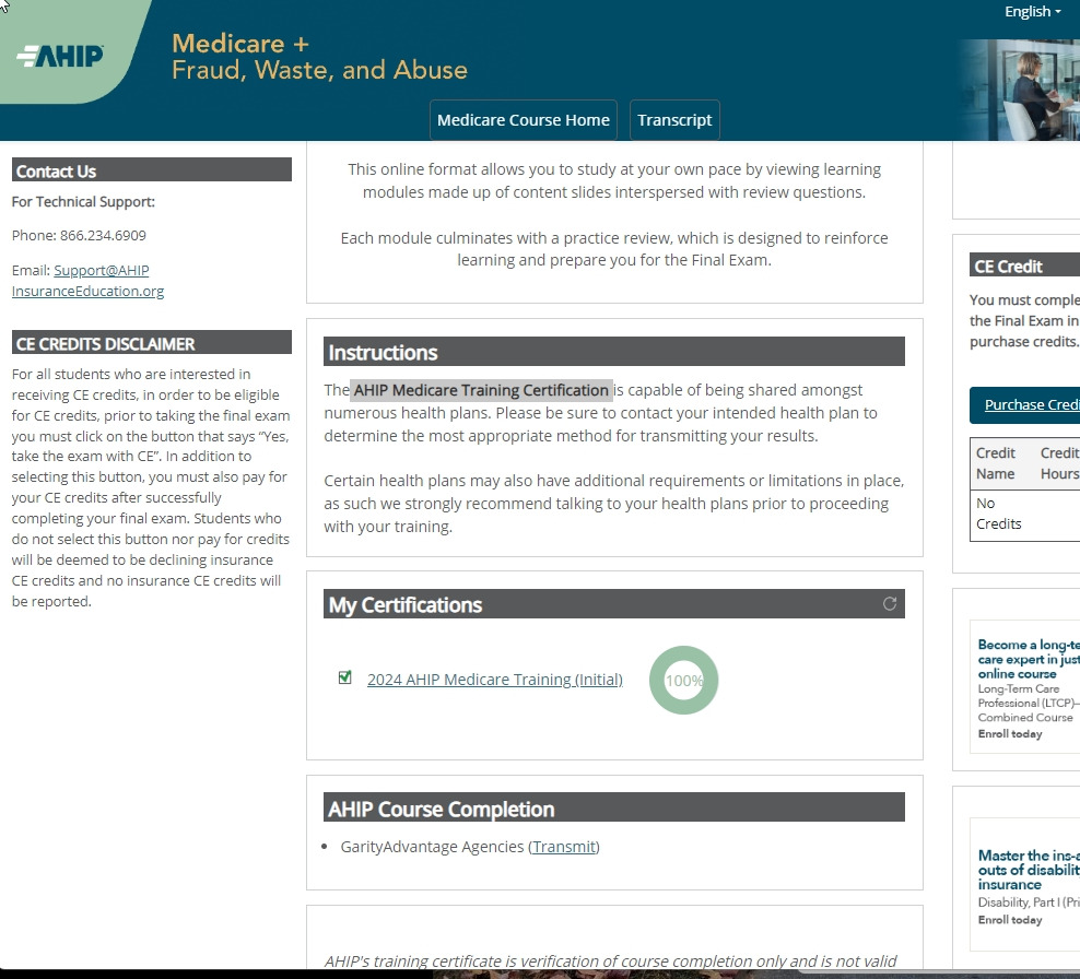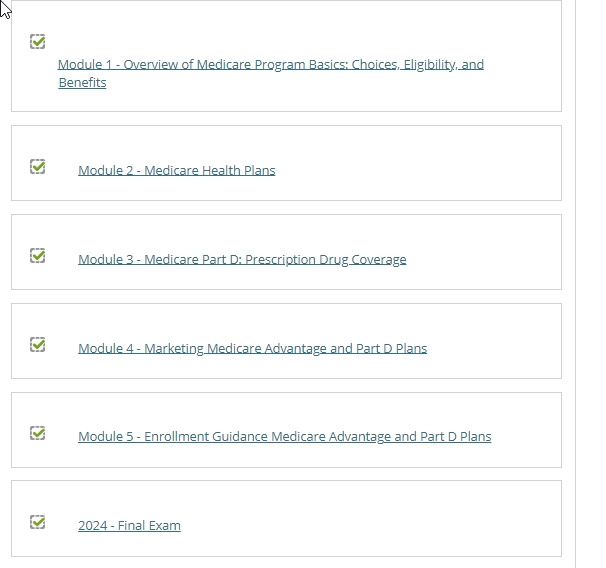일단 아래의 사이트로 가입을 한다. My Certifications에 동그라미 된 부분이 0으로 시작해서. 100까지 채워져야 한다. medicare 파트는 5개의 모듈이 있다. 각 모듈은 이론 설명을 듣고, 20개의 문제를 90점이상으로 통과해야 한다. 하루에 하나씩 하려고 했으나, 뭔가 시작하면 휘몰아치는 성격이라, 그냥 3일동안 다 했다. 그리고 마지막으로 시험을 보는데 50문제를 역시 90점 이상으로 통과해야 한다. 이것은 지난달에 시험친 언니를 통해서 조금 도움을 받았다. 내가 이것을 통과했다고 메디케어에 대한 전반적인 지식을 빠삭히 아는것은 아니다. 그냥 관문을 통과했을 뿐이다.