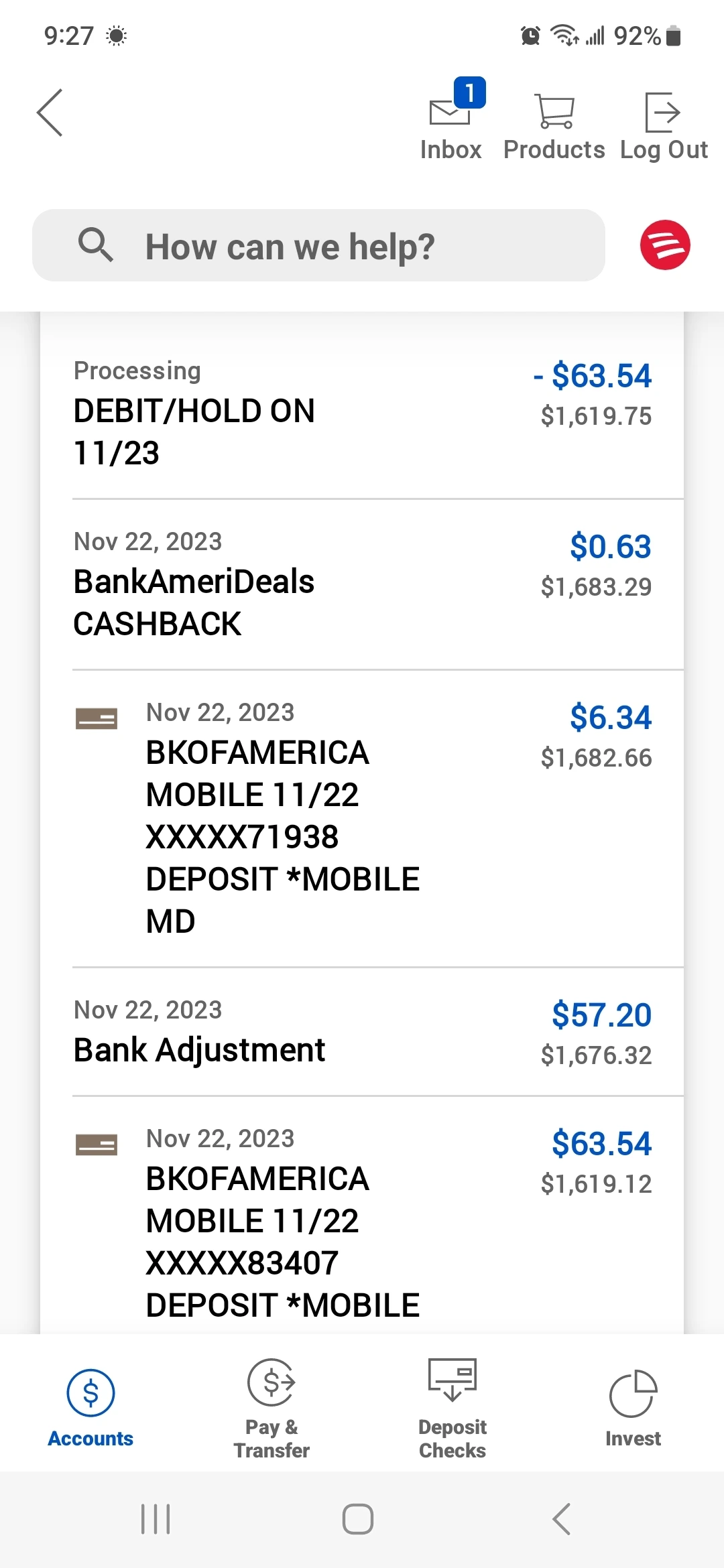 결론은 알아서 adjustment가 된다이다. 지난번 63.54달러를 체크를 폰으로 입금하는데, 금액을 잘못써서 6.34로 들어갔다. 최종 done을 누르기전에 페이지를 아웃하고 다시 정상금액으로 디포짓처리를 완료했다.