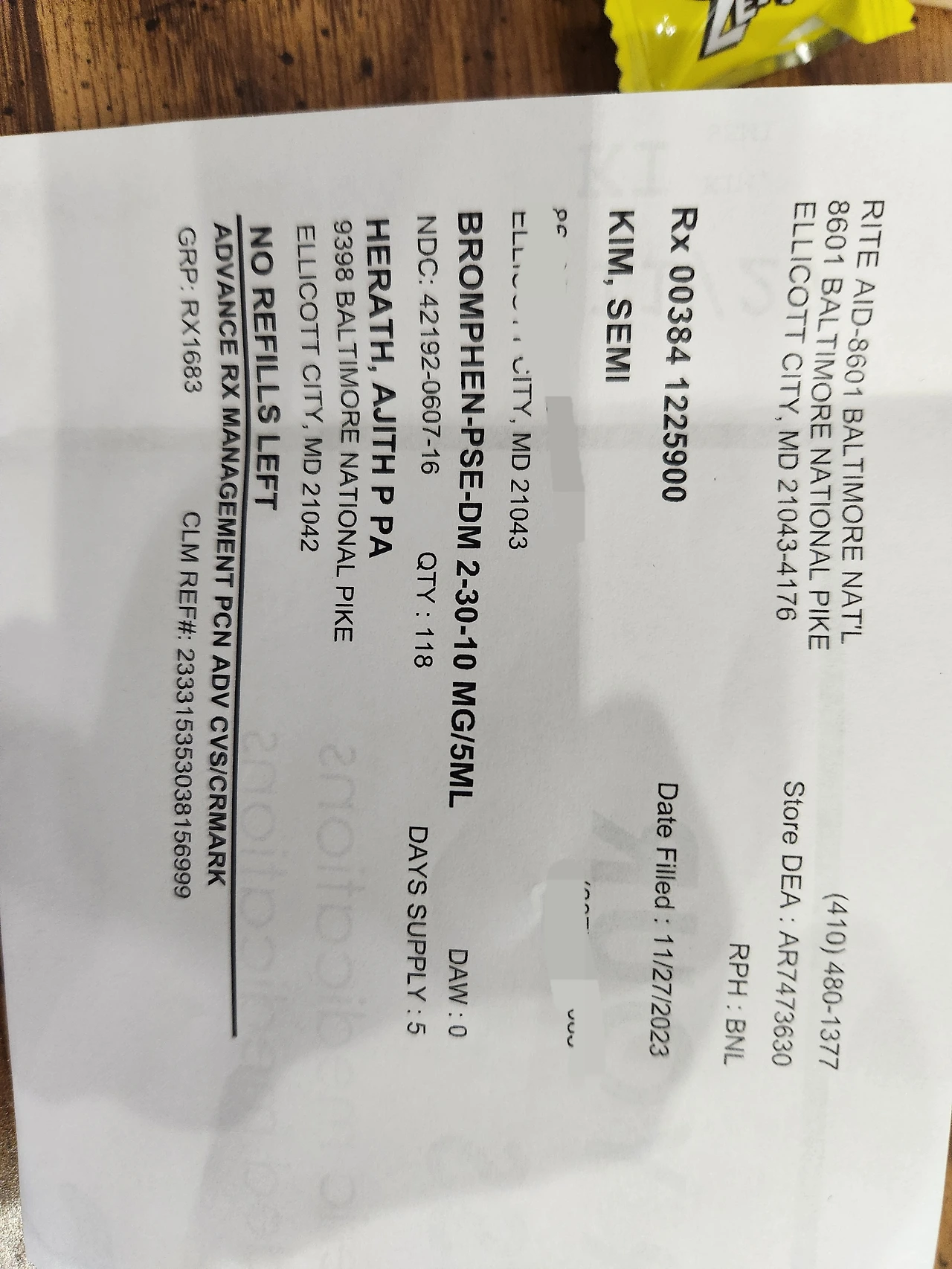 미국은 집 근처 원하는 약국으로 처방전을 보내줘서 편하다. 그러나 약국에 갔더니 줄이 길어서 다음날 픽업하러 갔다. 이 약이 뭐길래 한번 먹었는데 기침을 안 한다. 신기하다. 좀 더 지켜보자. 보험 처리된 것이 118ml에 11.6달러란다. 우리 보험으로 어전케어는 현장에서 10불, 추후에 청구서 10불 이렇게 지불한다.