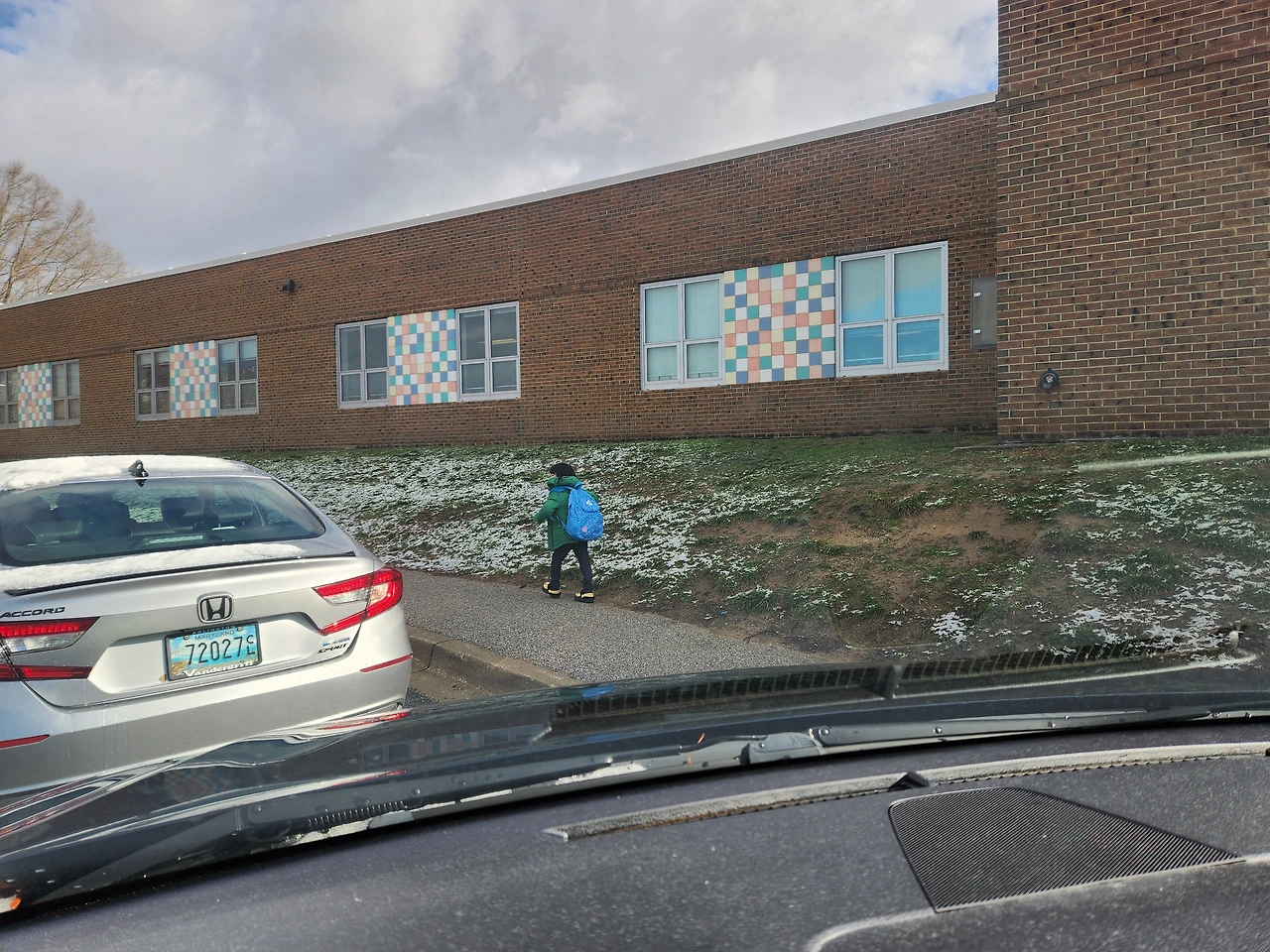 둘째가 바이올린을 두고 가서 막둥이랑 같이 학교에 갔다. 초등학교와 중학교가 나란히 있어서, 바이올린 갖다 두고 막둥이를 학교에 두고 왔다.