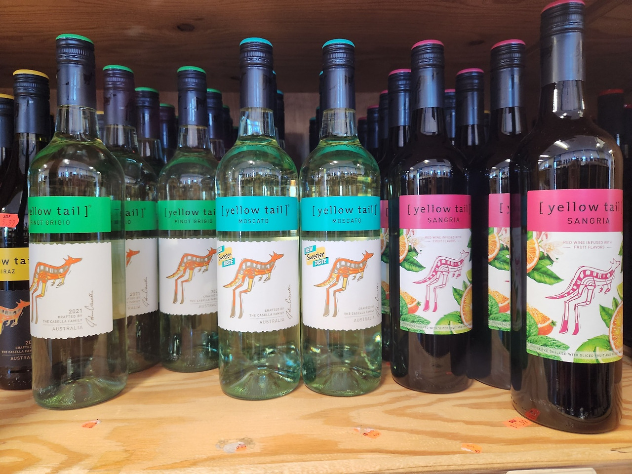 호주산 와인도 칠레산 못지않게 많이 이용되는 것 같다. 딱 LABEL에 붙은 그림만 봐도 이들이 호주에서 온 것임을 금방 알아차릴 수가 있다. YELLOW TAIL이란 와인인데 아래에 적힌 저 글자(PINOT ORGIO, MOSCATO, SANGRIA, )에 따라서 LABEL 종류가 달라진다. 이것은 포도의 품종을 뜻한다.