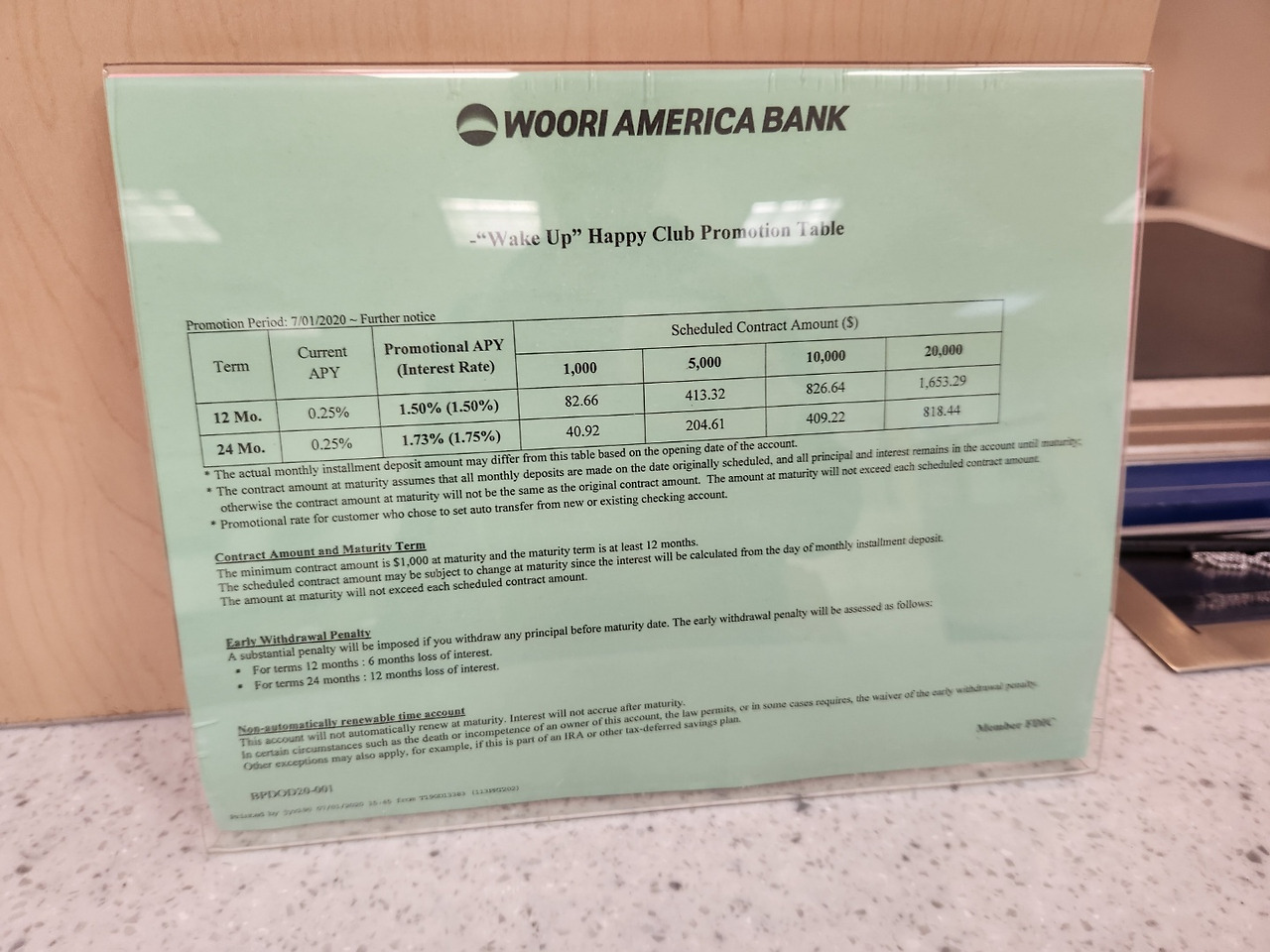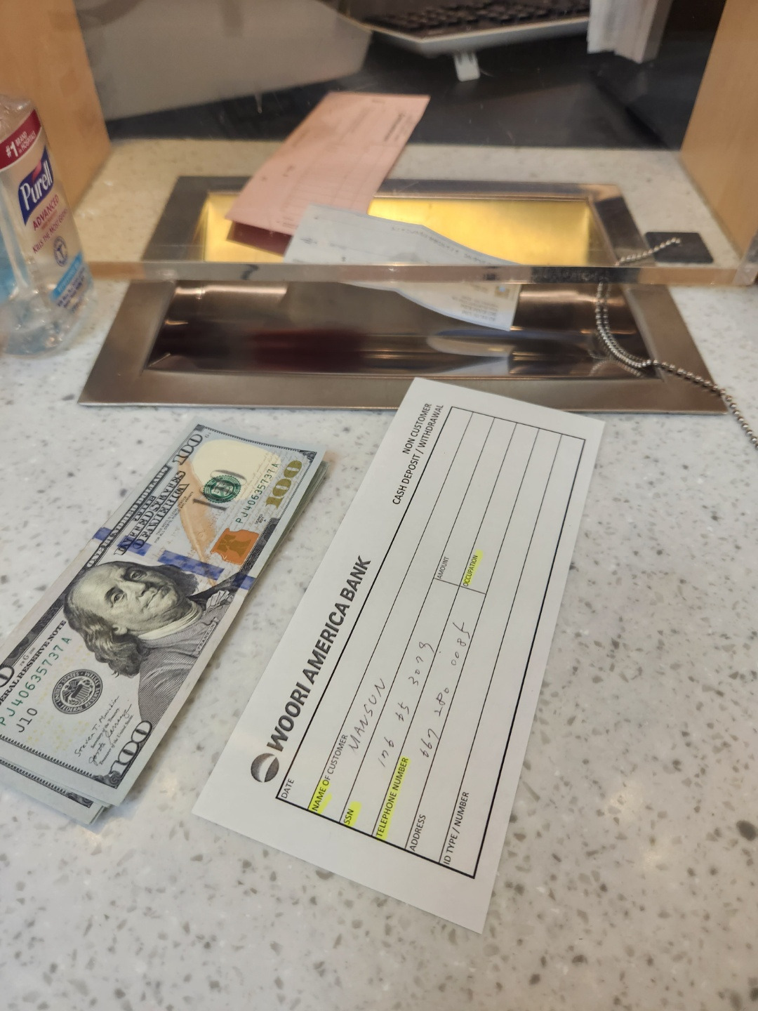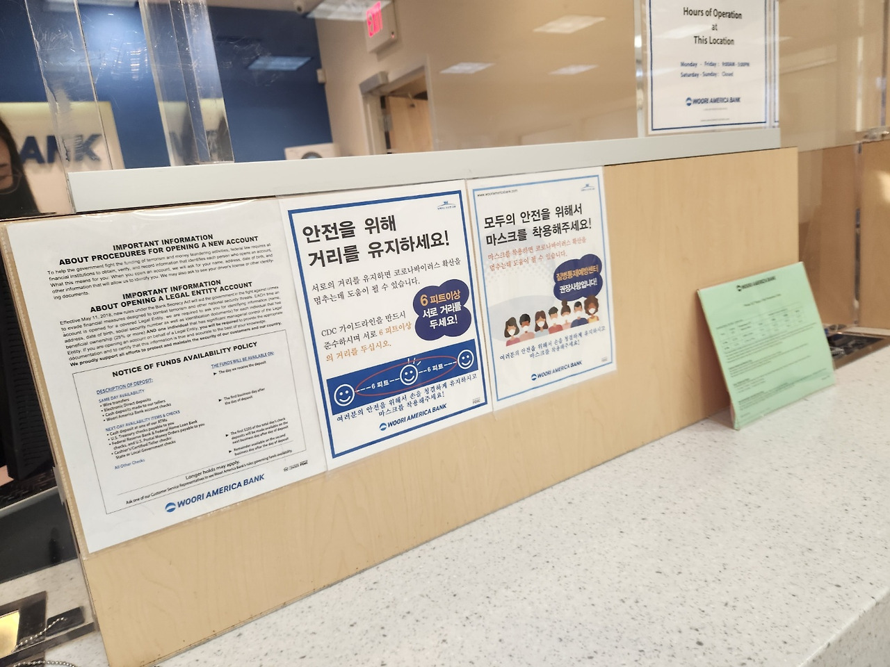 은행으로 가기 전에 BOA에 들러 CASH 1000달러를 뽑고 우리 아메리카 은행으로 갔다. 점심시간이라 그런지 직원이 두 명밖에 없었고, 그냥 한국처럼 한국어를 사용하는 은행이다.