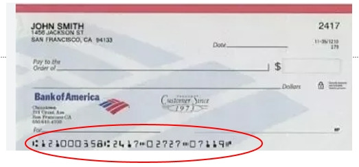 BOA에서 우리 아메리카은행으로 돈을 보내도 바로 사용할 수 없고 2-3일 지나가 가능하다고 해서 CASH를 통장에 직접 넣기로 했다(친구의 이름으로 받은 체크도 이런식으로 입금이 가능). 친구의 체크북에서 체크1장 뜯어서 은행 직원에게 보여주면 거기에 적힌 통장 정보로 입금이 가능하다는 이야기를 들어서 한번 해보기로 했다. 아래의 체크 그림에서 하단 숫자 정보는 계좌번호와 라우팅 번호이다.