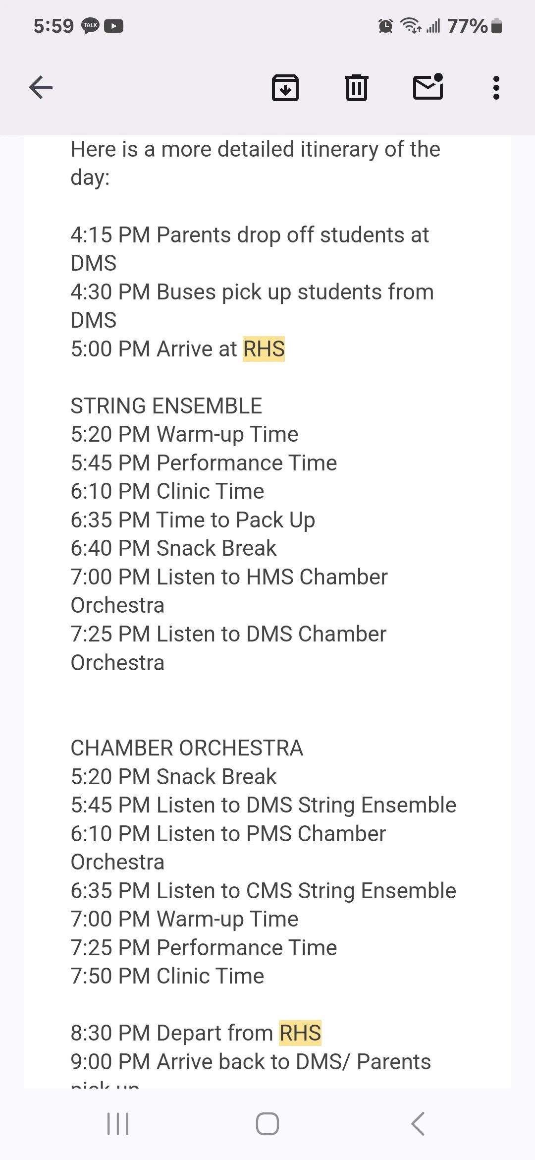 미국 중고등생은 참 좋은 경험을 많이 한다. 해마다 2번 이상 오케스트라 공연 무대에 올라가는데, 이것만으로도 아이들에게 큰 값진 경험이라고 생각된다. 오늘은 조금 특별한 행사에 공연을 하러 간다. 각 학교마다 오케스트라의 실력을 뽐내는 그런 경연대회가 있나 보다. 왜 오늘 거길 가는지 잘 모르는 내가 동료에게 이 이야기를 꺼냈더니 이런 것이 있다고 있다고 하시며 잘 아는듯했다.