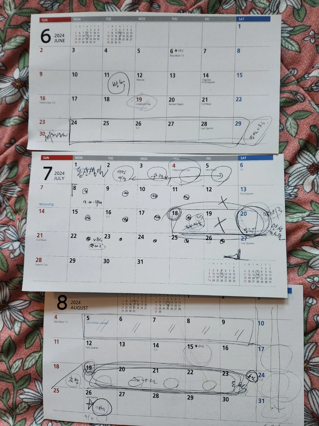 어찌 되었건, 슬슬 일정표를 들고 다니면서 여기저기에서 얻은 정보를 통해 일정을 야무지게 짜본다. 보통 2월에 이것을 마치거나 3월까지도 완료하게 된다. kinder학생의 경우, 봄 말쯤에 교육청에서 연락을 다시 준다는데, 기다려 봐야겠다. 일단 4주는 b교회 vbs로 6월 말에 5일, 7월 초에 n교회의 서머 캠프 2주<375불>, 그 뒤에 1주 vbs로<50불> 나머지 시간을 채운다. 나머지는 교회 vbs 하나 더 보내고, 집 근처 수영장에서 하는 캠프 1주일 보내면. 2주는 더 채워질 것 같다. 앞 뒤로 1주는 그냥 뒹글뒹글 타임을 가질 예정이다. 이 아이가 어딜 가 줘야 언니들에게 공부를 가르칠 수 있다. 8월26일 내가 해방되는 날이구나.