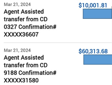 6만 불은 작년 8월경에 넣었다. 지금 7개월쯤 지났으나 61646.66불로 불었지만 찾을 때는 60313.68불을 받았다. 작년 12월쯤에 넣은 1만 불은 10080.67로 불었으나, 찾을 때는 10001.81로 받았다.