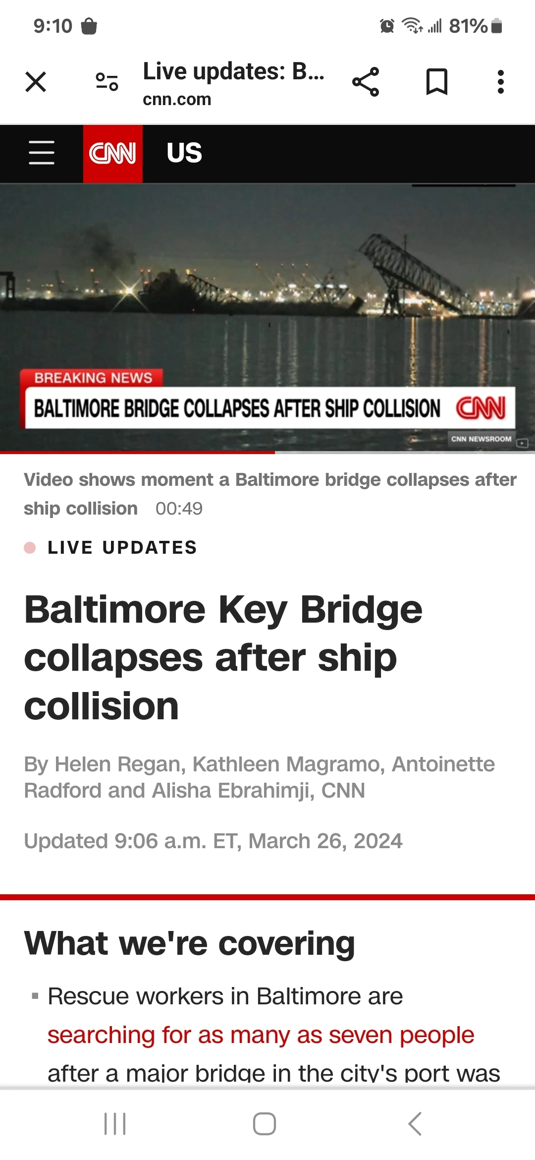 브랜든 스콧 볼티모어 시장은 엑스(X·옛 트위터)에 “현재 구조 작업이 진행 중”이라고 언급했다.