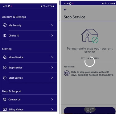 남편이름으로 ACCOUNT가 개설되었지만 내가 다 관리를 하므로 오늘도 남편인 것처럼 내가 대행했다. 아래와 같이 MOVE SERVICE라는 것을 클릭하면 된다. 생각보다 쉽다.