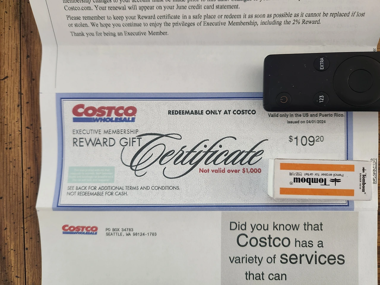 해마다 이맘때면 코스트코에서 구매액의 2%씩 적립한 포인트가 체크 한 장으로 집으로 날아온다. 연회비가 120불인데, 이 체크가 120불 이상이면 잘 쓴 것이며, 이것이 100불이면 연회비를 20불 내고 사용한 셈이 되는 것이다.