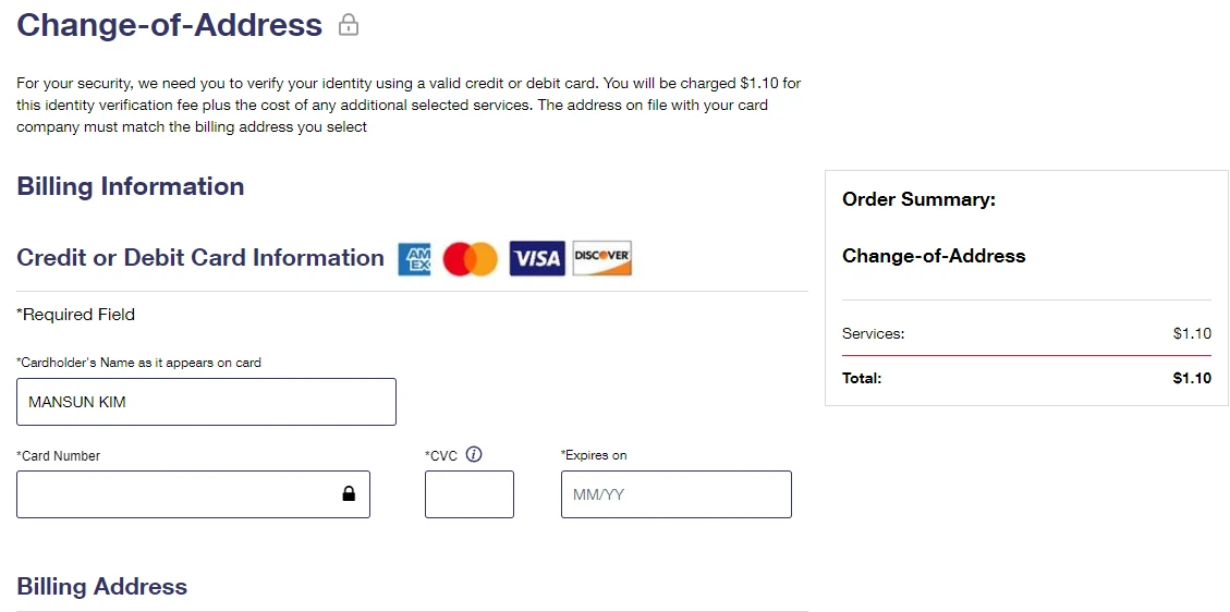 오늘은 USPS Change-of-Address 서비스를 이용해 보았다. 이사준비가 생각보다 만만치가 않다. 이러면서 하나하나 미국생활에 대해 더 근접하는 느낌이다. 우리 집 앞에 큰 우체국이 있는데, 이사 후에 오는 우편물에 대하여 이사한 집으로 옮겨달라는 요청을 해보았다.