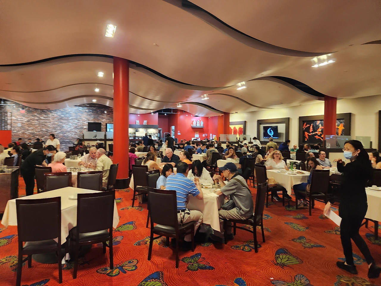 일요일-아이들이 밥을 먹어야 뭔가 활동을 하기 때문에 미니 밥통으로 아침밥을 만들고, 깻잎과 김으로 간단히 밥을 먹었다. 9시부터 수영장이 오픈인데, 사람들이 줄을 서고 있었다. ARIA는 2층을 P라고 엘리베이터에 적어놨는데, 거기에서 스타벅스를 따라가면 갈림길이 나오는데, 한쪽은 수영장, 다른 한쪽은 컨벤션센터이다. 스타벅스 밑으로 에스컬레이터가 있는데, 우버를 타려면 그 아래에 있는 에스컬레이터를 한번 더 타야 한다. 이곳을 자주 이용한 이유는 카지노의 담배냄새를 피하기 위함이었다. 수영을 하고 놀다가 KJ딤섬이란 곳으로 이동했다. 인기 유투버가 다녀간 곳이라고 모르는 사람이 없었다. RIO라는 오래된 호텔 안에 있는 식당인데, 중국인들이 정말 가득했다. 나보고 자꾸 중국말로 뭐라고 뭐라고 하는데 알아들을 수가 없었다.