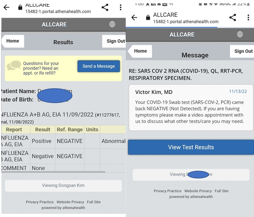 남편: 올해 1월에 디덕터블을 이미 냈기 때문에, 독감 검사와 피검사로 22.23달러 빌이 날아왔다. 이메일로 납부하라고 고지가 날아와서 냉큼 냈다. 검사 결과는 모두 독감은 A 형에 POSITIVE, 코비드는 negative로 왔다. 이것도 그 사이트에 가서 확인하는 것을 이제야 알았다. 돈 내려 들어가 보니 거기 result가 있네.