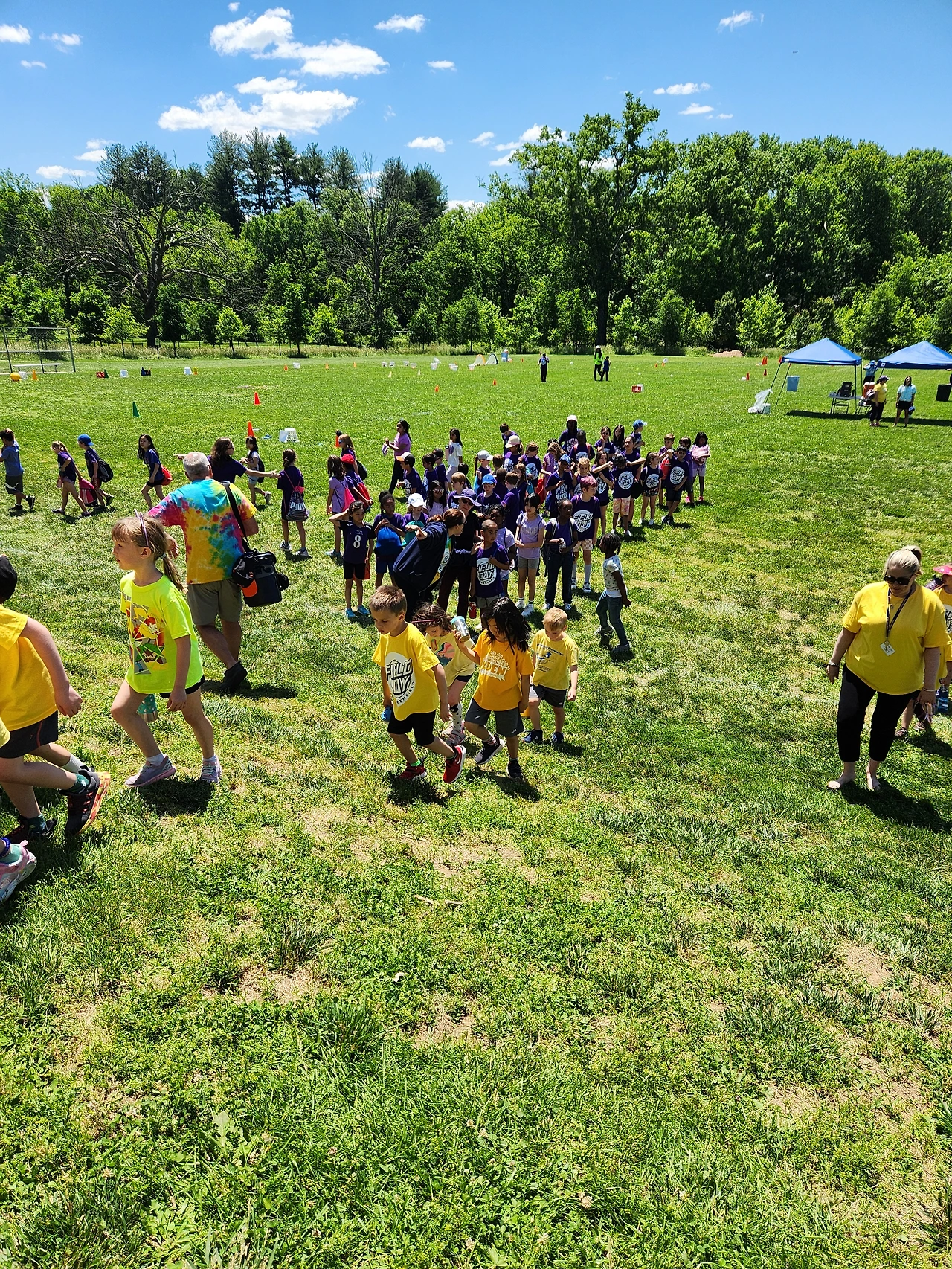 아침부터 뭔가 꼬였다. 스쿨버스를 타러 갔더니 아이들이 컬러티를 입고 서있었다. 나는 다음 주 금요일로 알고 있었는데 오늘이 Field day였던 것이다. 중학교 Fun day와 반대로 일정을 알고 있었던 것이다.