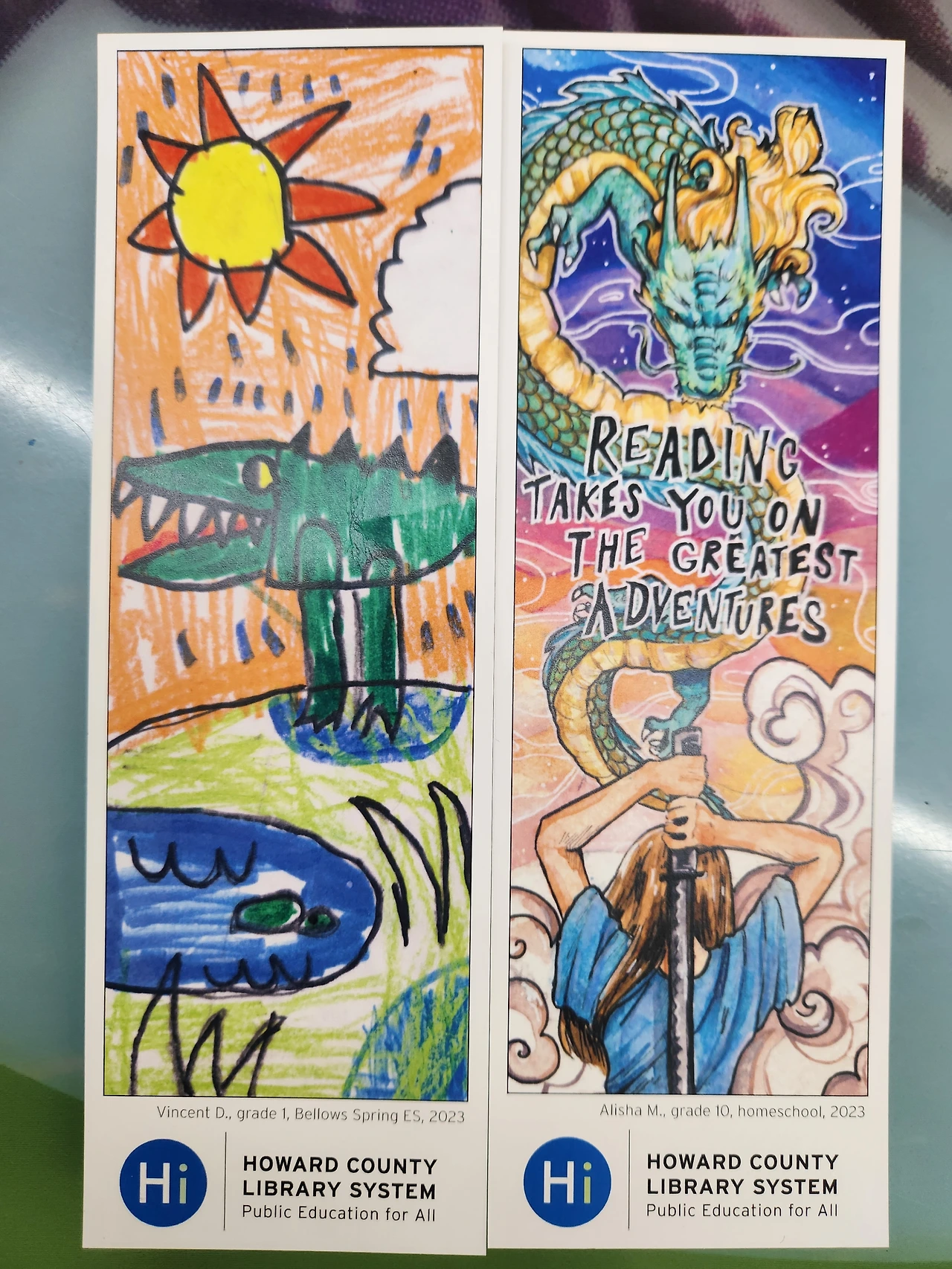 도서관 책갈피로 이 카운티아이들의 작품을 선정해서 나눠준다. 우리 아이도 잘 그리는데 한번 시도해 봐야겠다.