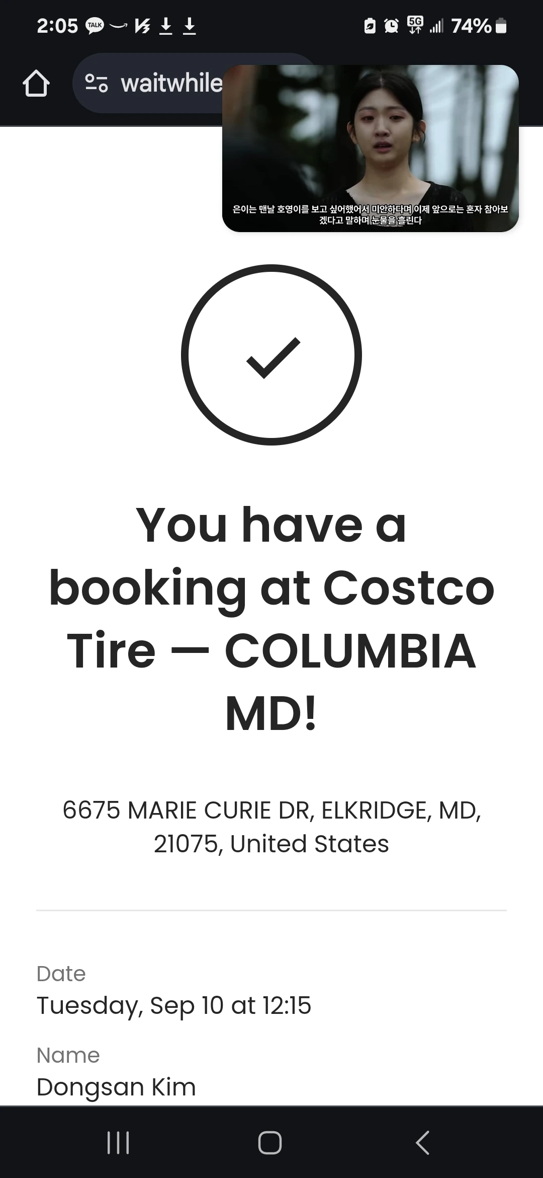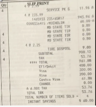 주행거리가 55555마일 정도 되었다. 오른쪽 뒤 타이어가 공기압으로 자꾸 말썽이다. 그런데 이제는 오른쪽 앞 타이어도 그런다. 교체 시기가 왔음을 직감하고, 작정하고 남편과 코스트코 타이어센터에 갔다. 도요타 시에나를 구매했을 때 기본으로 주어진 타이어가 fire***라는 회사의 상품인데 인지도가 낮은듯하다. 그래서 여기저기 알아본 결과 우리는 미쉐린 climate2로 교체하기로 했다. 마침 60불 할인을 해줘서 약간 저렴하게 사기는 했다. 결제를 마치고 2장으로 된 서류를 주는데, 여기로 전화해서 타이어 준비가 되었는지 확인을 하고 예약을 하라는 것이다. 때마침 우리 폰이 통신사를 이동 중이라 그때 전화가 안되었던 것이 아닌가.