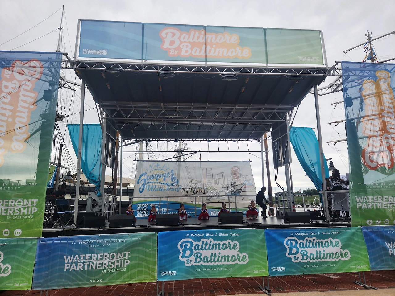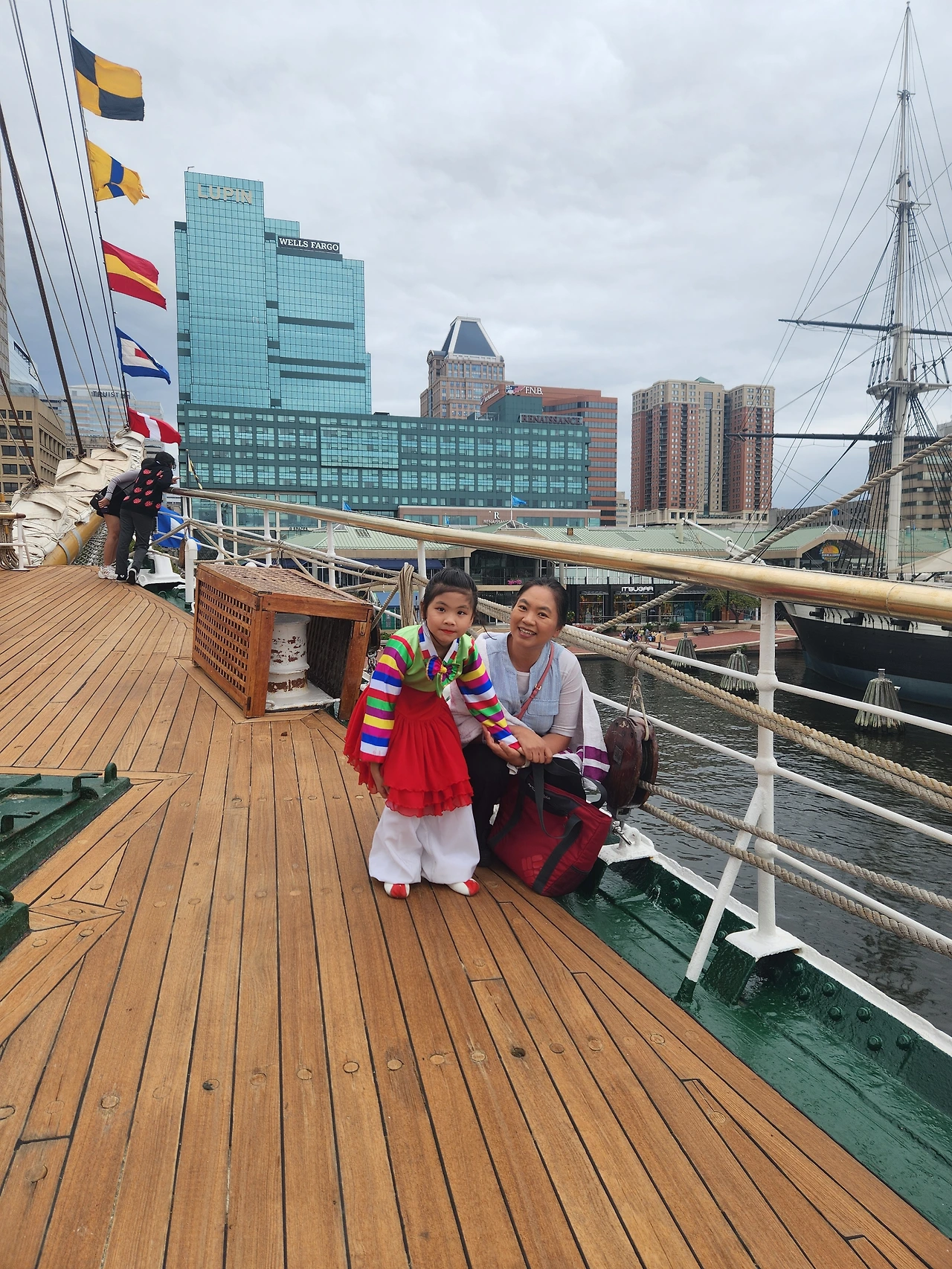 이번 9월 7일 공연은 Baltimore inner harbor에서 열린 공연이었다. 배들은 둥둥 떠 있고 날씨는 흐렸다., 겨울이면 그곳에서 아이스링크장이 생기는데, 거기서 어떻게 공연을 한다는 것이지?? 비도 살짝 오는 것 같고??? 걱정했지만 무사히 공연을 마쳤다.