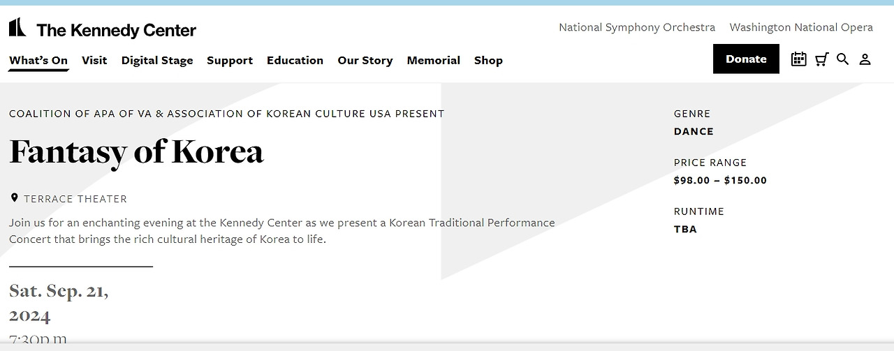 아이들 덕분에 여기저기 많이 가봤지만, 지난 토요일은 정말 뜻깊은 장소를 방문해 보았다. 백악관 옆 1.4마일 떨어진 케네디센터에서 무용 공연을 했다. Fantasy of KOREA라는 타이틀로 한국에서 공연 전문가들이 와서 퍼포먼스를 하는데, 오프닝으로 꼭두각시와 부채춤을 하기로 결정된 것이다. 아마 2월경부터 진행이 된 것 같았다. 그 모든 공연들은 이날을 위한 연습이었던 것 같다.