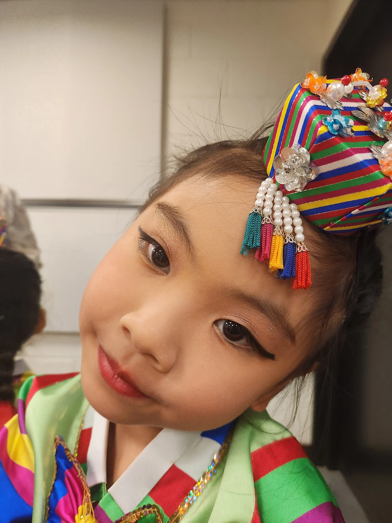 공연할 때마다 느끼지만 엄마들의 노력이 없으면 하나도 되는 것이 없는 것 같다. 두 분의 엄마가 머리를 아주 잘 땋으신다. 거기에 편승하여 우리 아이들도 줄을 선다. 어떤 분은 속눈썹 붙이는 것에 탁월한 기술이 있으시고, 어떤 분은 눈화장을 잘하신다. 나는 볼터치 쪽으로 기여를 해본다.