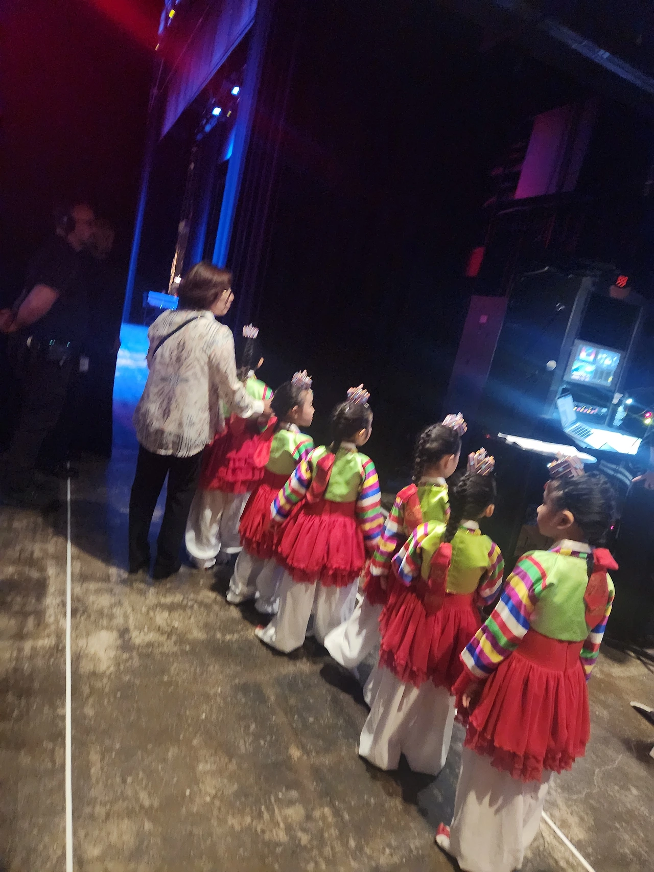 다 같이 모여서 무대뒤 탈의실로 이동했다. 이곳은 공연자만이 들어갈 수 있어서 보안이 철저히 유지되는 곳이며, 그냥 방문객들은 밖에서 잘 모르는 곳에 문이 있다. 들어가서 엘리베이터를 타고 4층으로 올라가니 가수들이 대기실로 사용하는 듯한 그런 룸 들이 가득했다. 우리 아이들이 부채춤 16명, 꼭두각시 6명에 학부모와 선생님 7명으로 구성된 팀이 모두 들어갔다. 들어간 시간은 3시경인데, 공연시작은 7시 30분이라서 긴 시간 아이들이 견디기 힘들까 봐 감사하게도 꼭두각시 엄마들만 입장해 주기로 결정되었다.