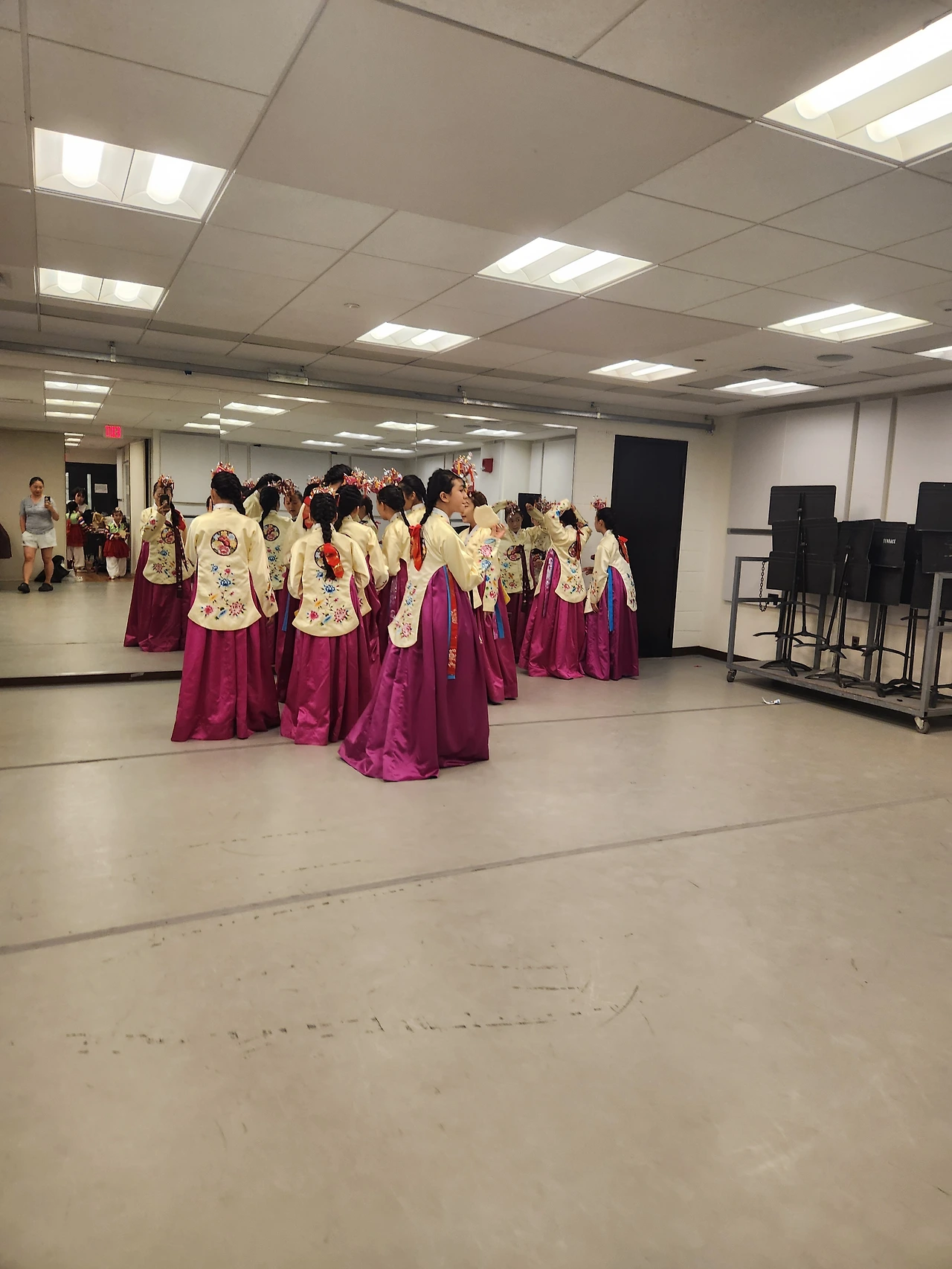 화장을 이미 하고 왔지만, 여기저기 뛰어다니는 애들이라 그런지 다시 터치를 해줘야 했고, 철봉 비슷한 것에 매달려 자꾸 돌고 돌아서 머리도 다시 펴서 묶어줘야만 했다. 고등학교 언니들은 크롬북을 펴서 숙제를 하기도 하고, 멋진 한복을 입고 K POP 댄스를 추면서 긴장을 푸는 아이들도 있었다.