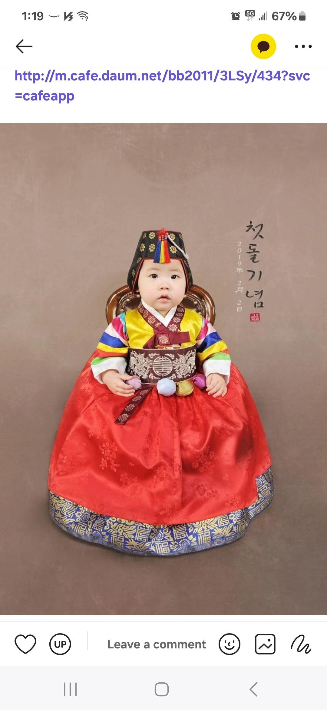 돌잔치 때문에 한복을 사려고 하는 듯해서 우리 아이 돌사진을 보여줬다. 한국의 스튜디오에서 찍은 거라 무척 부러워하는 듯했다.