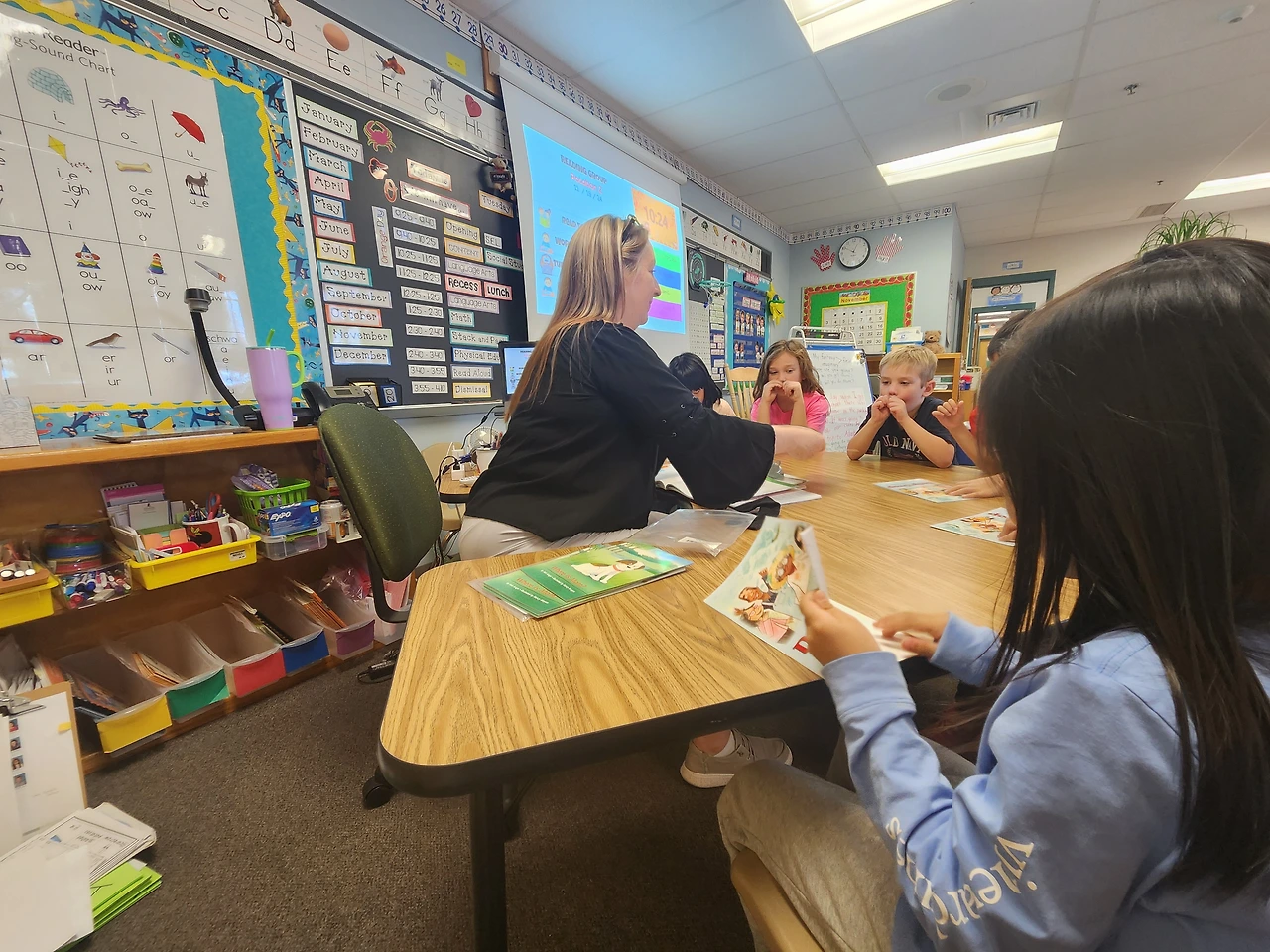 반 학생이 5개의 그룹으로 나뉘어서 어떤 활동을 한다. 영어시간에 소 그룹별 선생님과 공부를 하게 된다. 5팀이 15분씩 로테이션되면서..