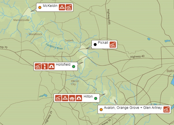 이곳에도 캠핑장이 있다. 주에서 제공하는 사이트를 들어가 보면 다음과 같이 캠핑장이 여기저기 나뉘어 있는 것을 볼 수 있다. 다른 주립공원은 보통 1-2곳에 캠핑장이 밀집되어 있는데, 이곳은 좀 띄엄띄엄 나뉘어 있었다. 집에서 너무 가까워서 예약을 시도해보지는 않았다.