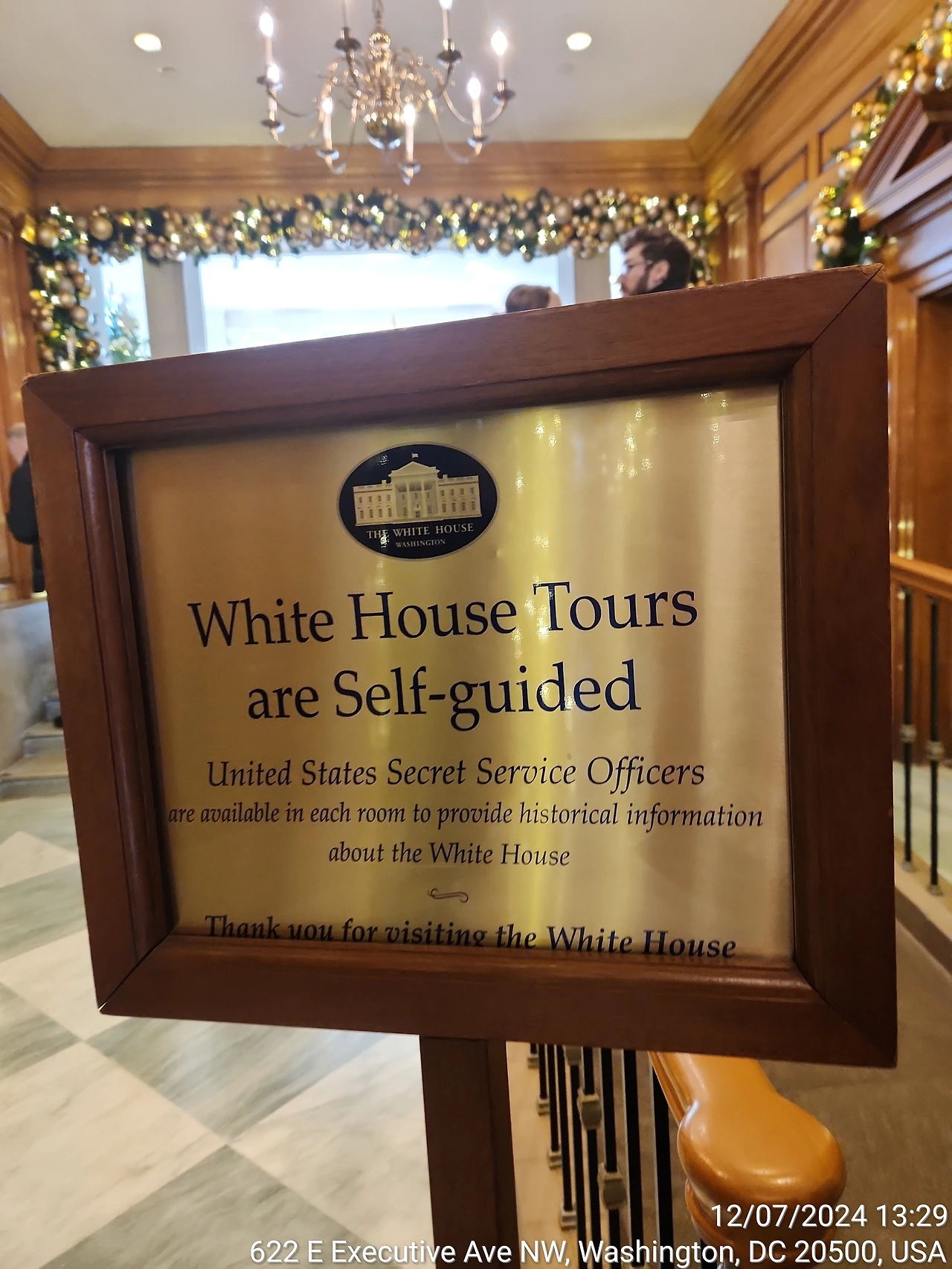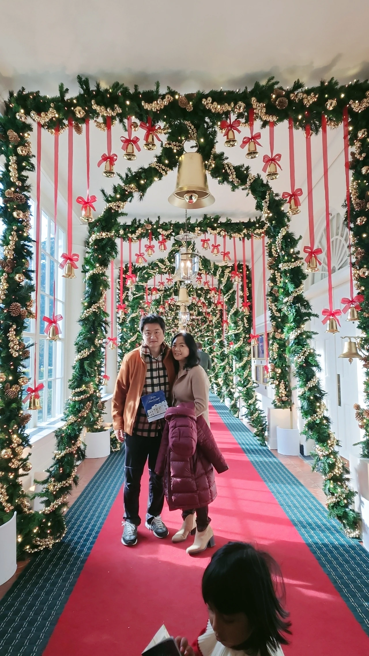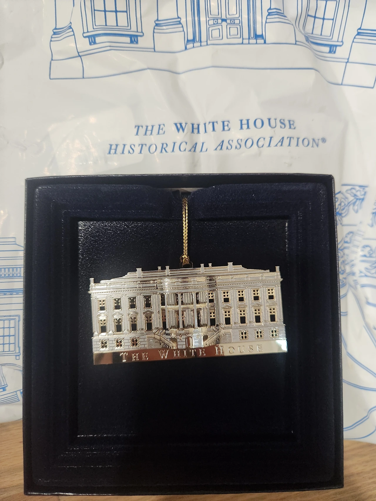걸어서 들어가는데 큰 현관 앞에서 다들 사진을 찍는다. 그래서 줄이 길게 늘어져 있던 것이다. 가족 단위로 사진을 찍기 때문에 핸드폰을 다음 가족에게 주면서 사진 찍어주기를 부탁한다. 우리도 뒤에 계신 분이 찍어주셨다. 그다음에 군악대의 생음악을 들으면서 현관 쪽으로 들어간다. 여기서부터 와.............. 하면서 놀람의 연속이었다. 나는 속으로 돈 많이 들었겠다... 이런 느낌을 받았다. 양쪽으로 GREEN ROOM, RED ROOM 이렇게 작은 방에 트리도 잘 꾸며져 있었고, 본관으로 들어가는 긴 복도에서 가족사진을 많이 찍는다. 여기도 순서대로 사진을 찍느라, 조금 기다려야 한다. 여기를 통과하면 기념품을 살 수 있는 작은 STORE 가 나온다. 우리는 백악관 오나먼트를 2개 구매했다(40.17불). 케이스가 멋져서 받는 더욱더 고급져 보인다.