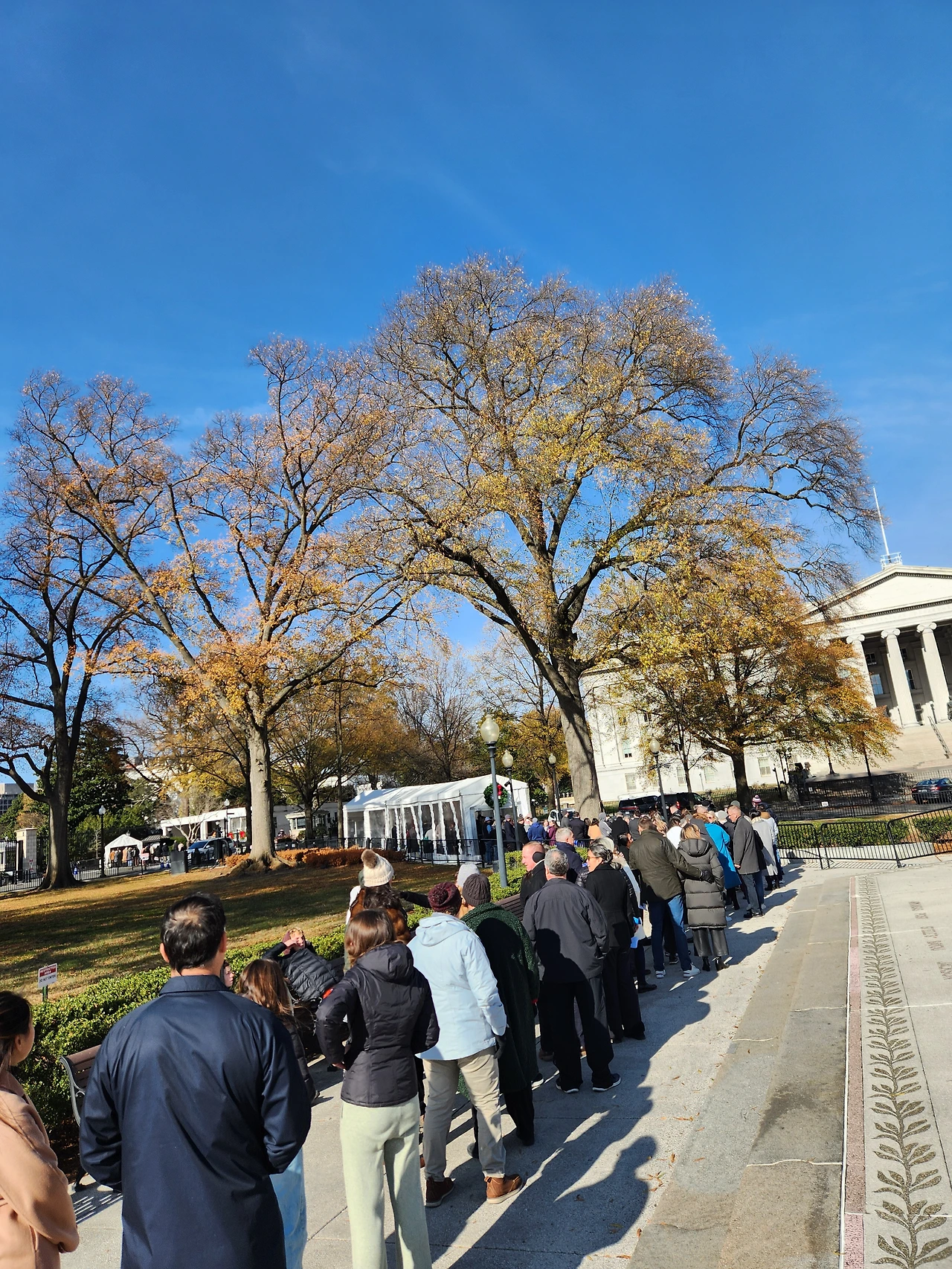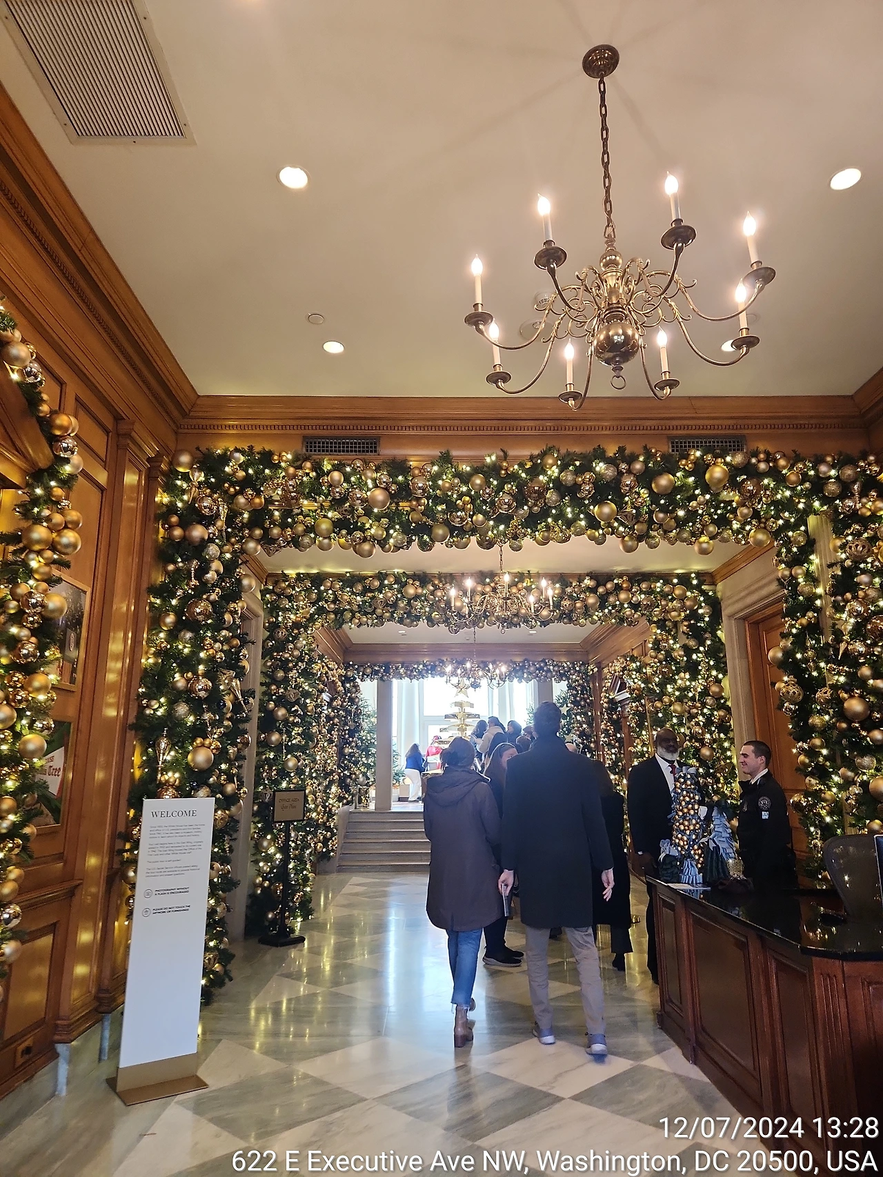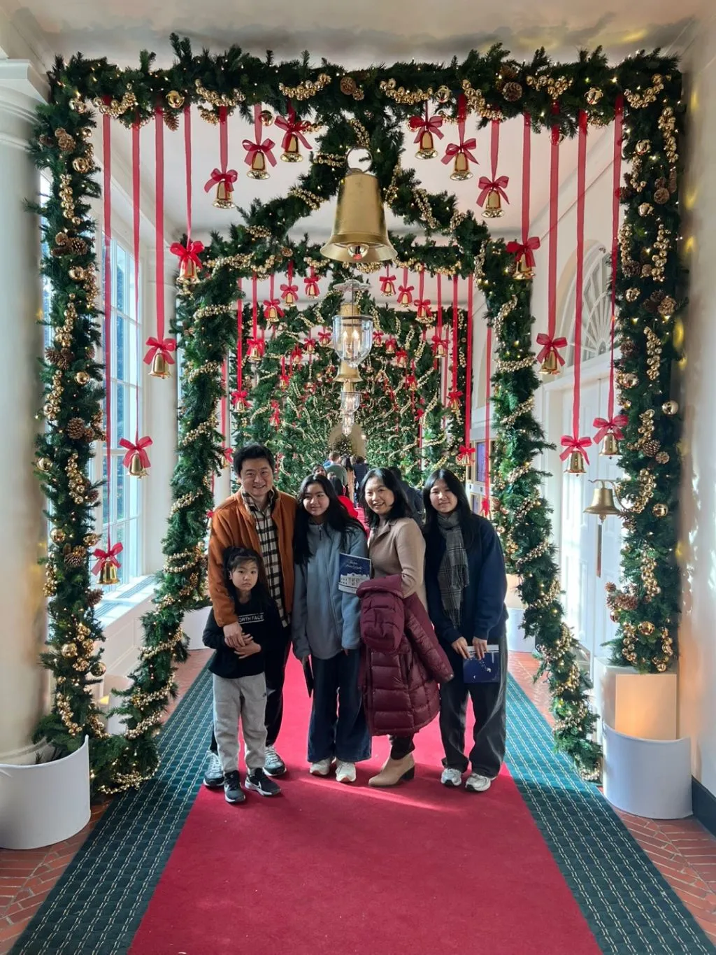 걸어서 들어가는데 큰 현관 앞에서 다들 사진을 찍는다. 그래서 줄이 길게 늘어져 있던 것이다. 가족 단위로 사진을 찍기 때문에 핸드폰을 다음 가족에게 주면서 사진 찍어주기를 부탁한다. 우리도 뒤에 계신 분이 찍어주셨다. 그다음에 군악대의 생음악을 들으면서 현관 쪽으로 들어간다. 여기서부터 와.............. 하면서 놀람의 연속이었다. 나는 속으로 돈 많이 들었겠다... 이런 느낌을 받았다. 양쪽으로 GREEN ROOM, RED ROOM 이렇게 작은 방에 트리도 잘 꾸며져 있었고, 본관으로 들어가는 긴 복도에서 가족사진을 많이 찍는다. 여기도 순서대로 사진을 찍느라, 조금 기다려야 한다. 여기를 통과하면 기념품을 살 수 있는 작은 STORE 가 나온다. 우리는 백악관 오나먼트를 2개 구매했다(40.17불). 케이스가 멋져서 받는 더욱더 고급져 보인다.