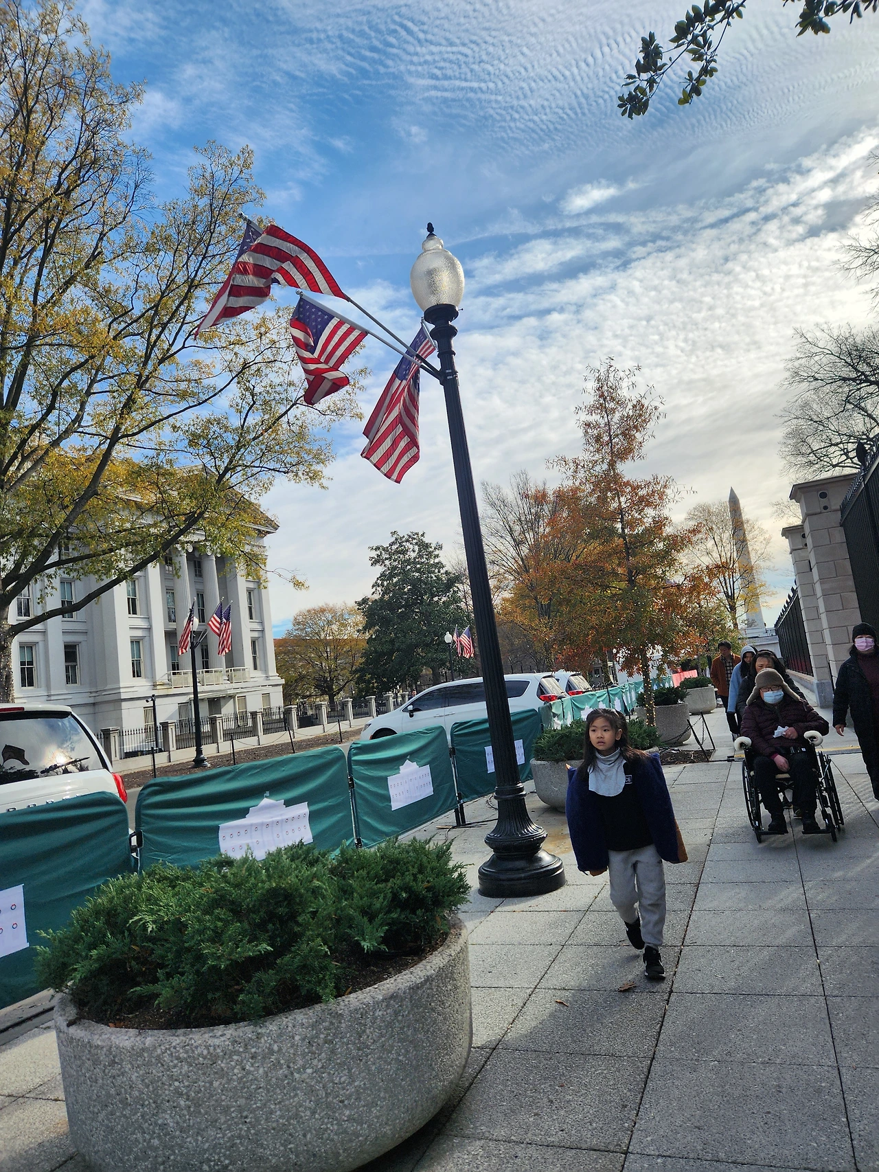 마지막은 백악관을 상징하는 FLAG와 미국 성조기가 나란히 있는 곳에서 사진을 많이 찍는듯했다. 우리는 그 긴 줄을 기다리기 힘들어서 그냥 나왔다. 아이가 화장실에 가고 싶다는데, 그곳에는 PUBLIC 화장실이 없다. 나오면서 가방을 맡겼던 호텔로 가서 화장실을 이용했다.